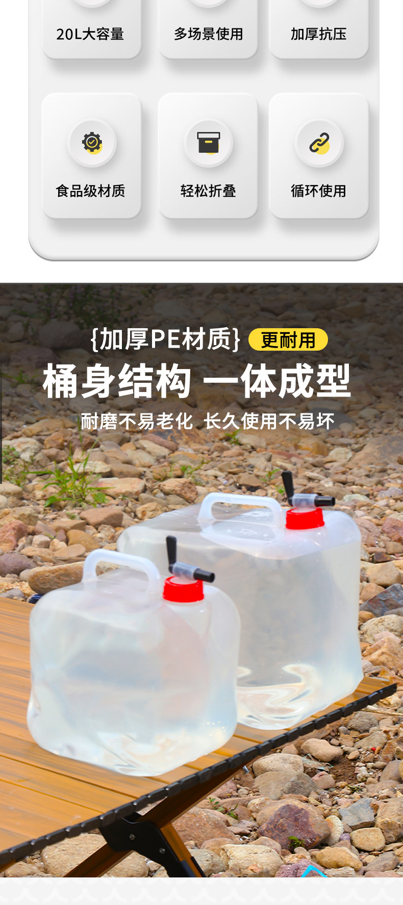 야외 두꺼운 접이식 물 가방 휴대용 대용량 물 용기 주전자 플라스틱 버킷 캠핑 장비 용품