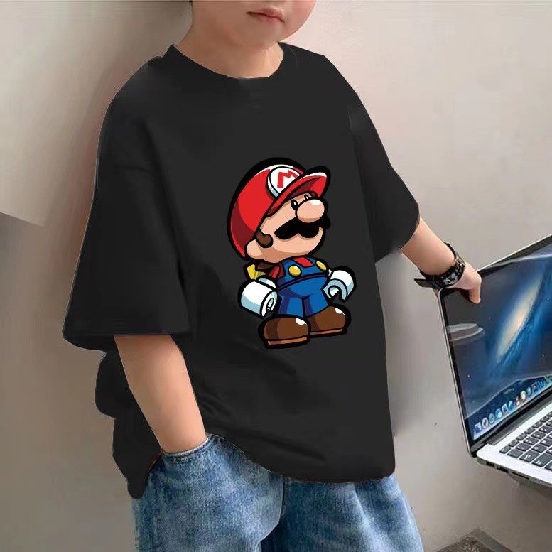100 면 아동복 소년 티셔츠 여름 새 어린이 반소매 만화 탑 느슨한 중대형 어린이 반소매 티셔츠스토어 가기