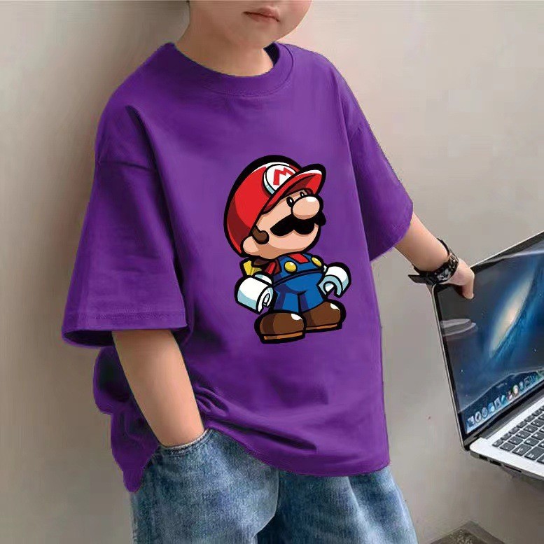100 면 아동복 소년 티셔츠 여름 새 어린이 반소매 만화 탑 느슨한 중대형 어린이 반소매 티셔츠