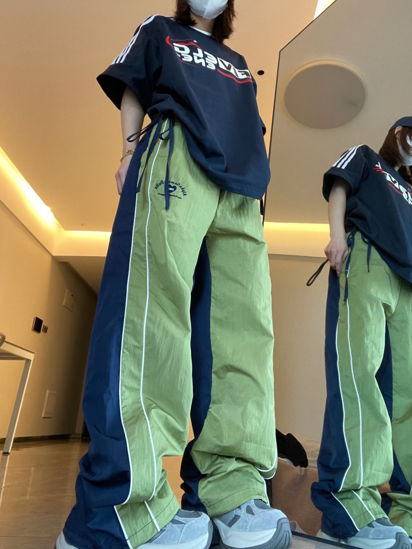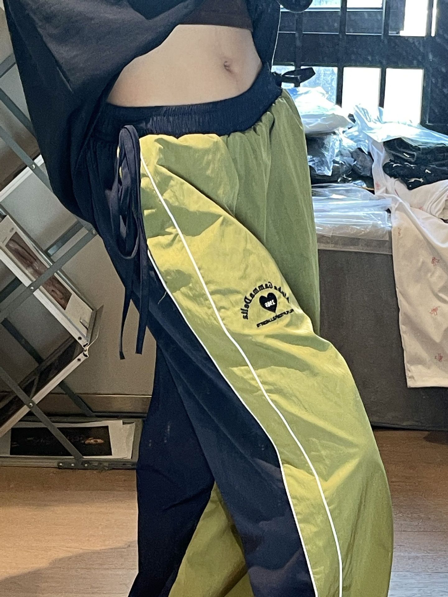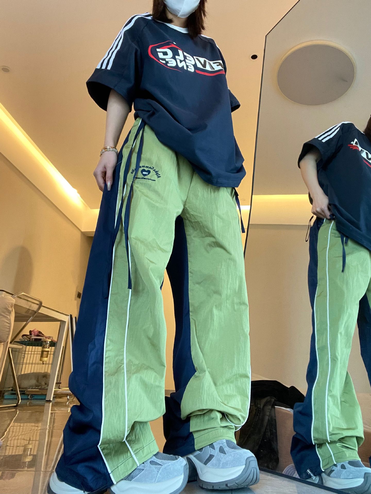 색상 일치 야외 느슨한 빠른 건조 낙하산 병 러시 스포츠 바지 여성 얇은 미국식 레트로 캐주얼 그린화물 바지스토어 가기