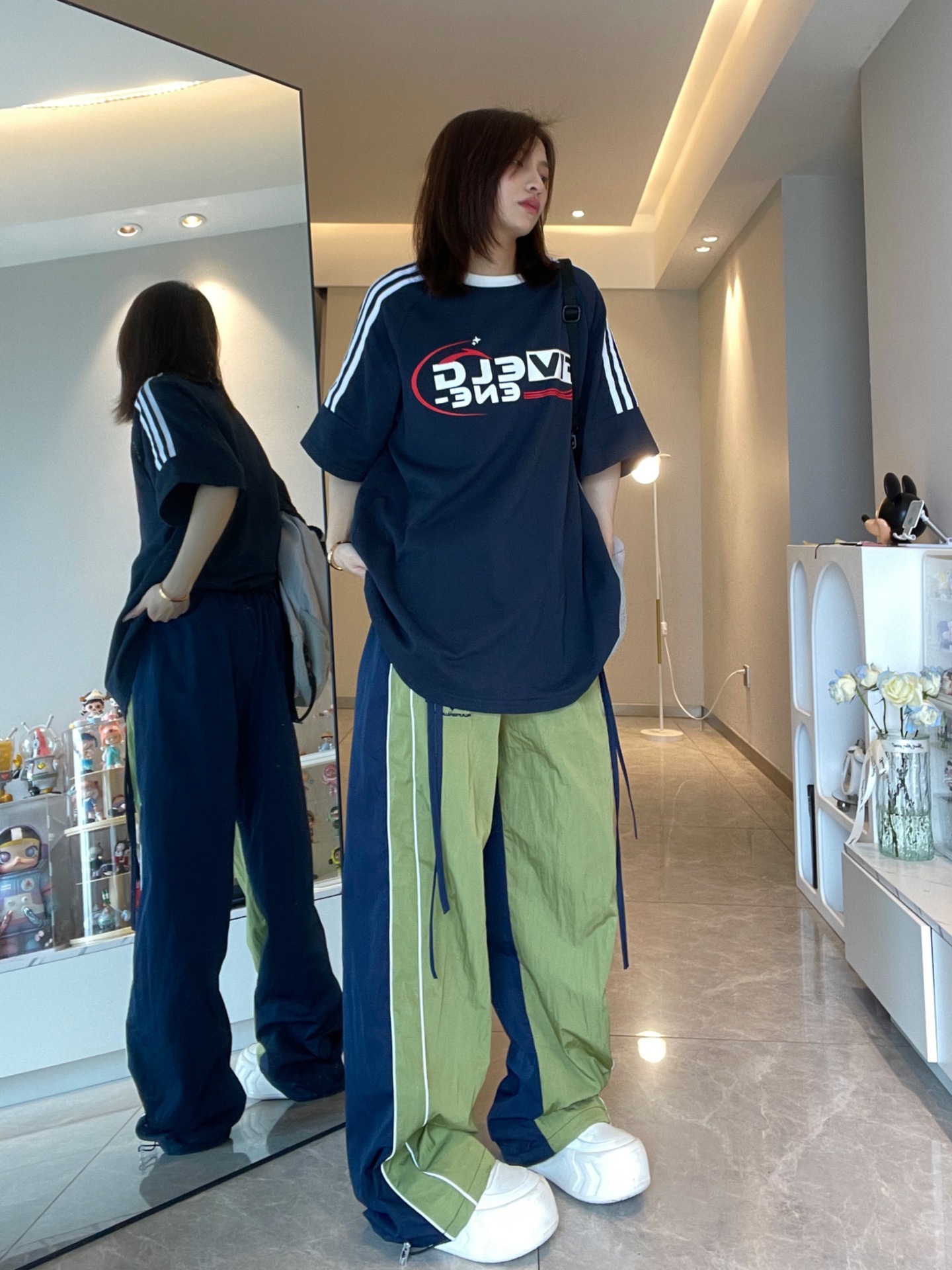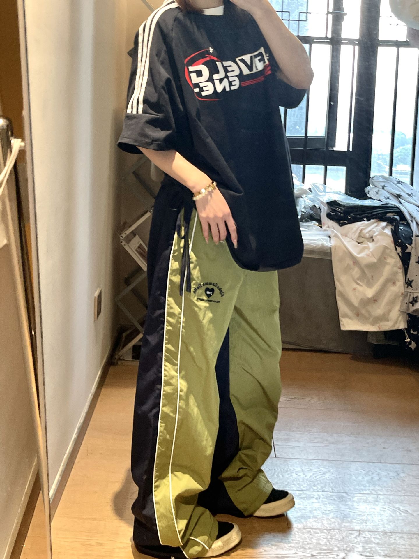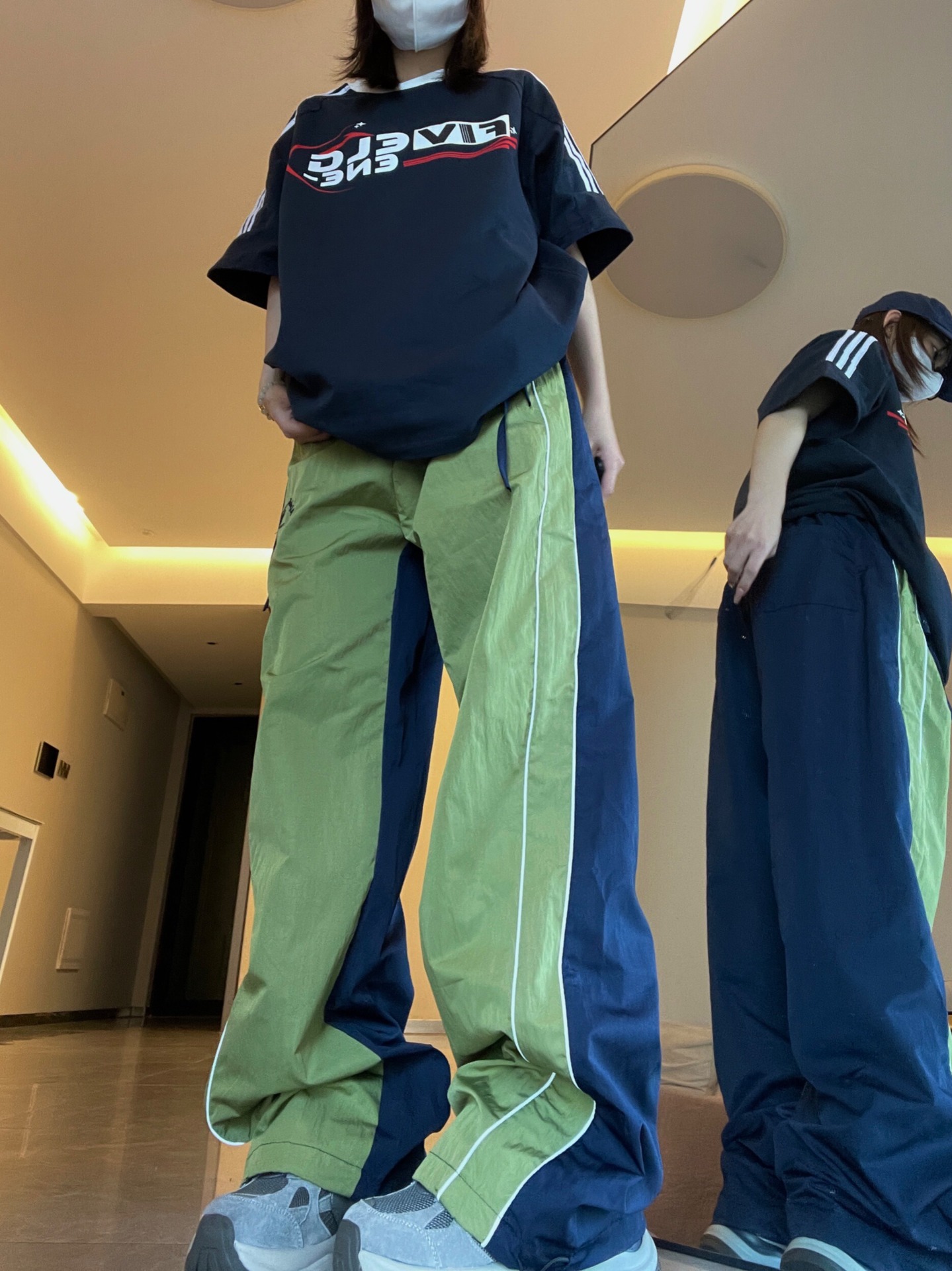 색상 일치 야외 느슨한 빠른 건조 낙하산 병 러시 스포츠 바지 여성 얇은 미국식 레트로 캐주얼 그린화물 바지스토어 가기