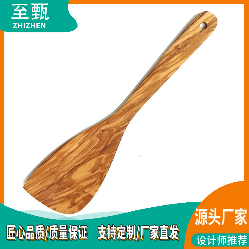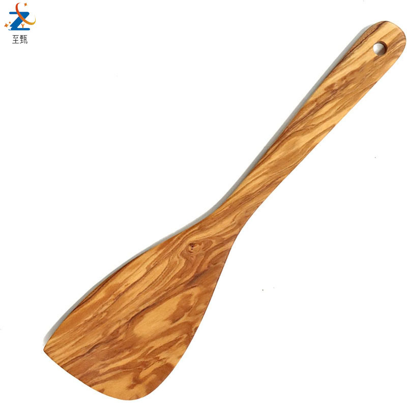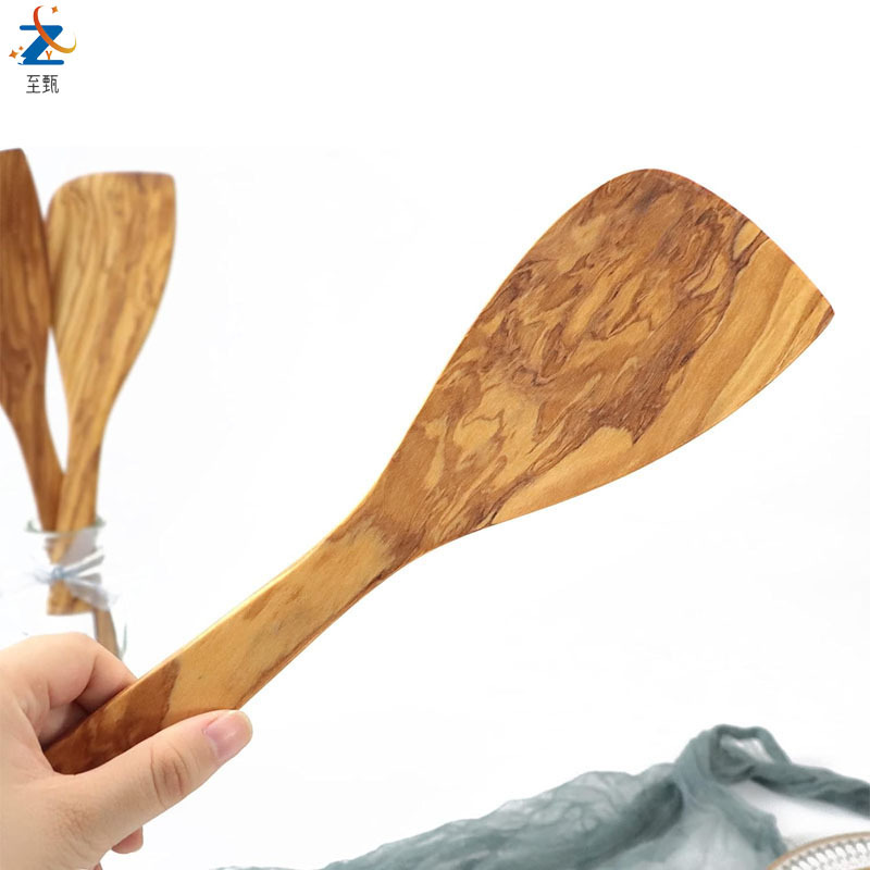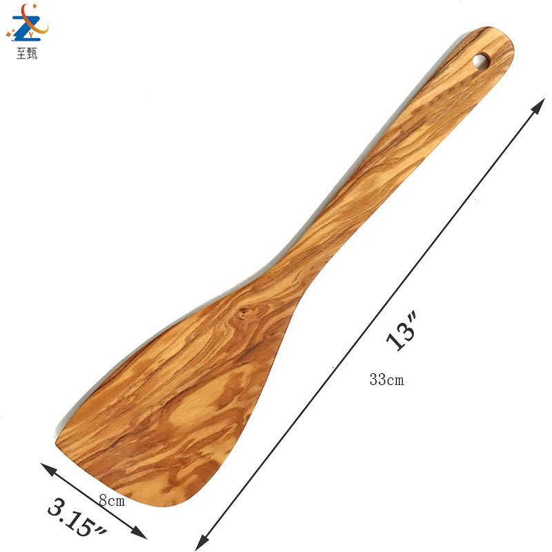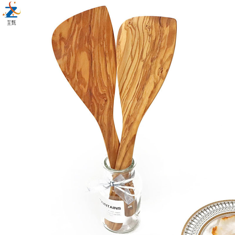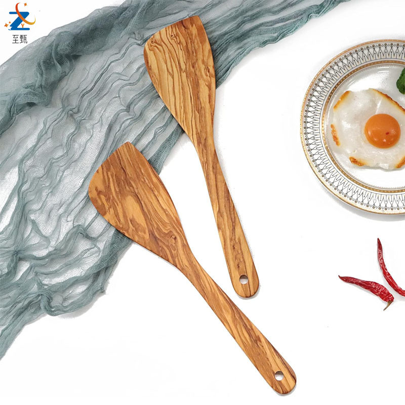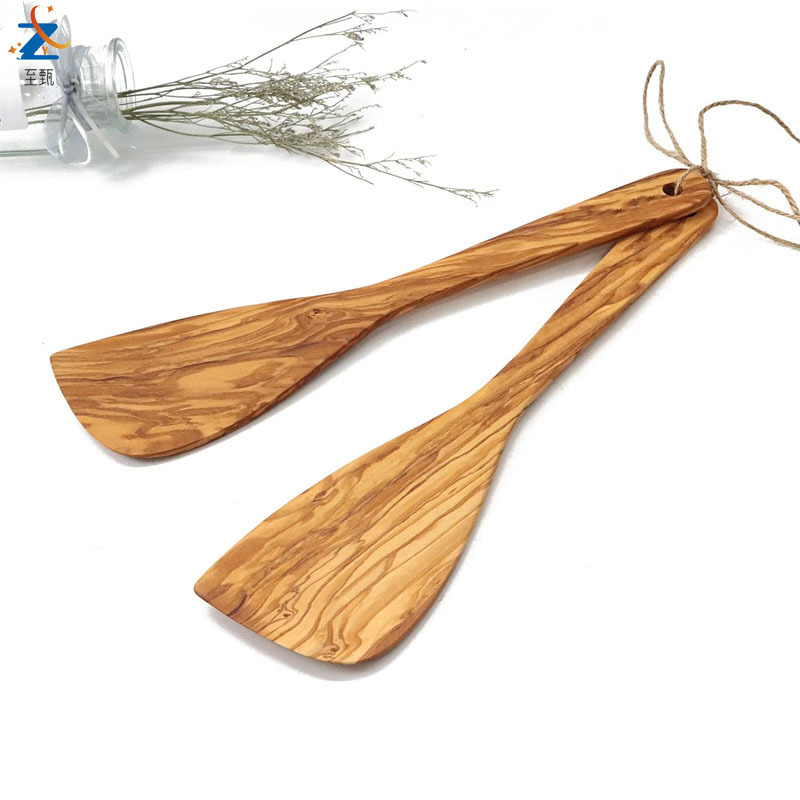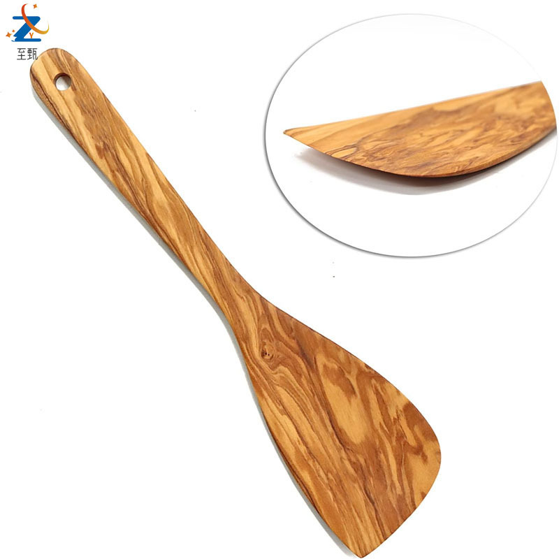 올리브 나무 주걱, 곡선 주걱, 플립 및 저어를위한 긴 나무 숟가락, 완벽한 집들이 선물