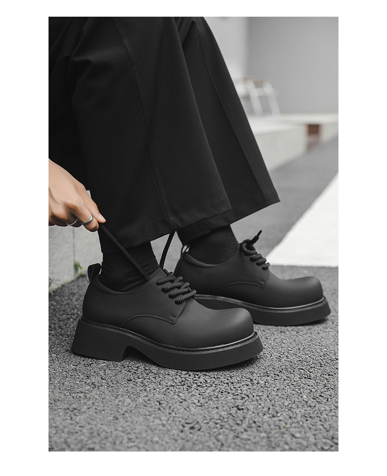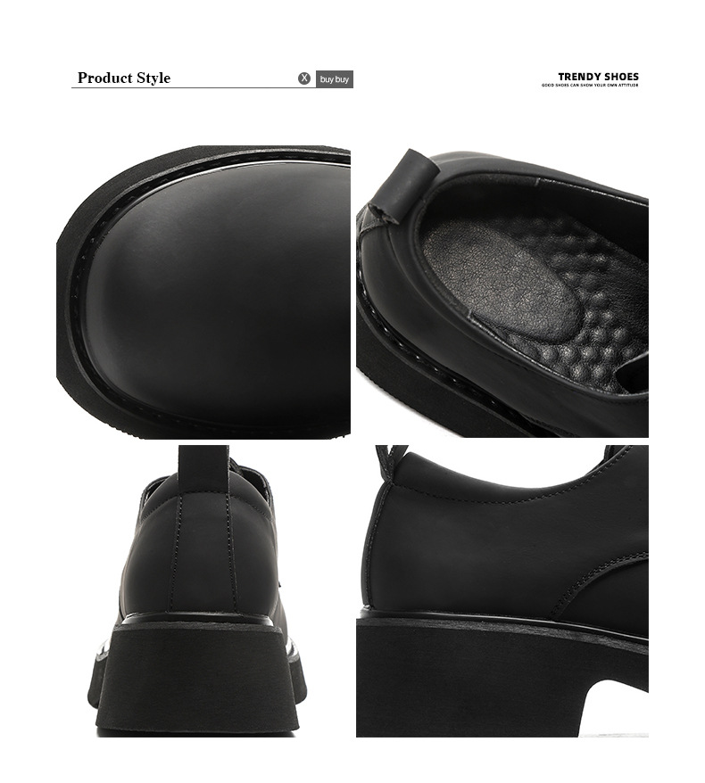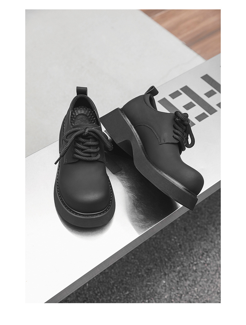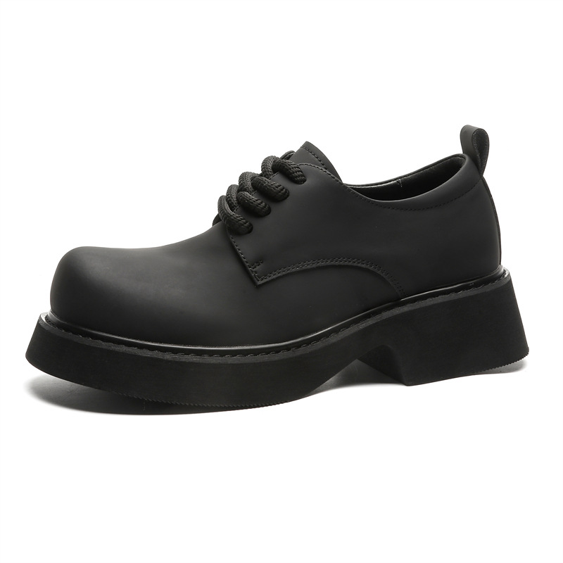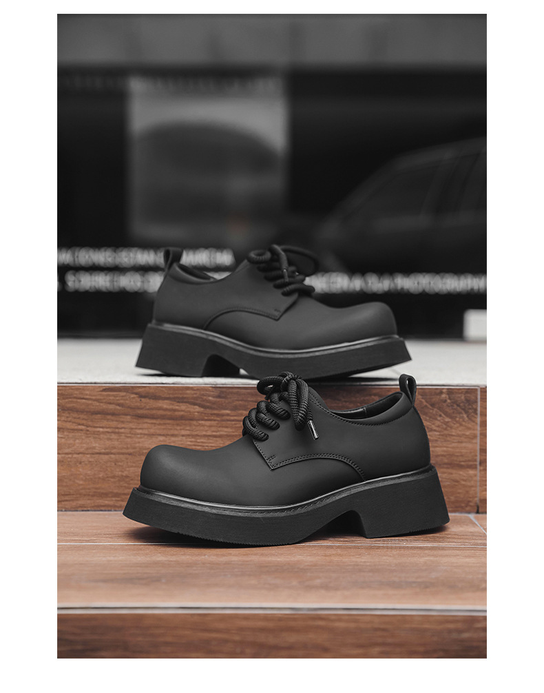 더비 신발 남성 하이 엔드 틈새 플랫폼 높이 증가하는 로우 탑 빅 토 가죽 신발 라운드 토 카본 블랙 비즈니스 통근 남성 신발스토어 가기