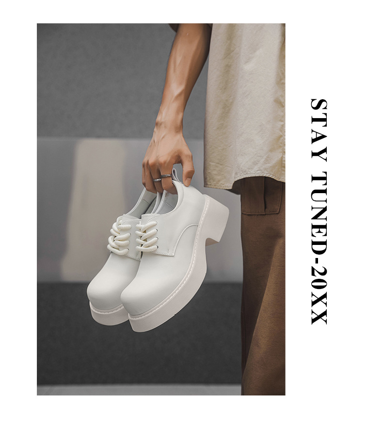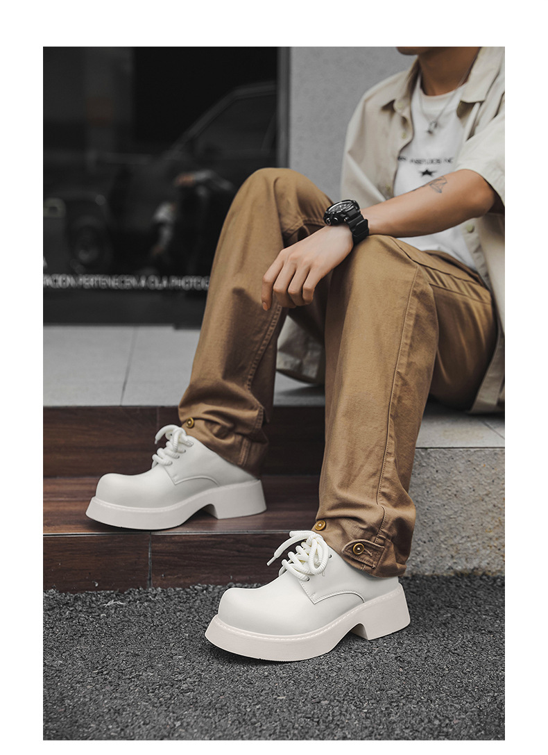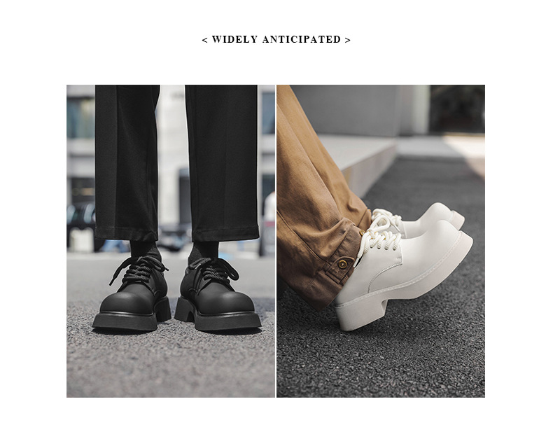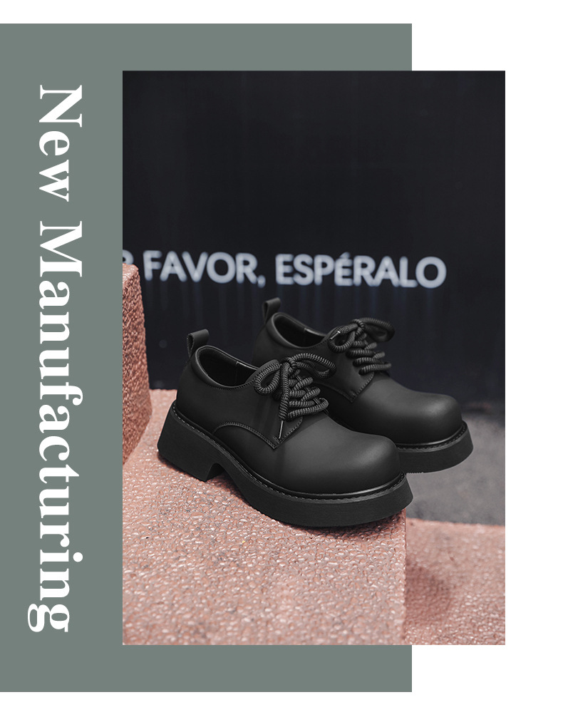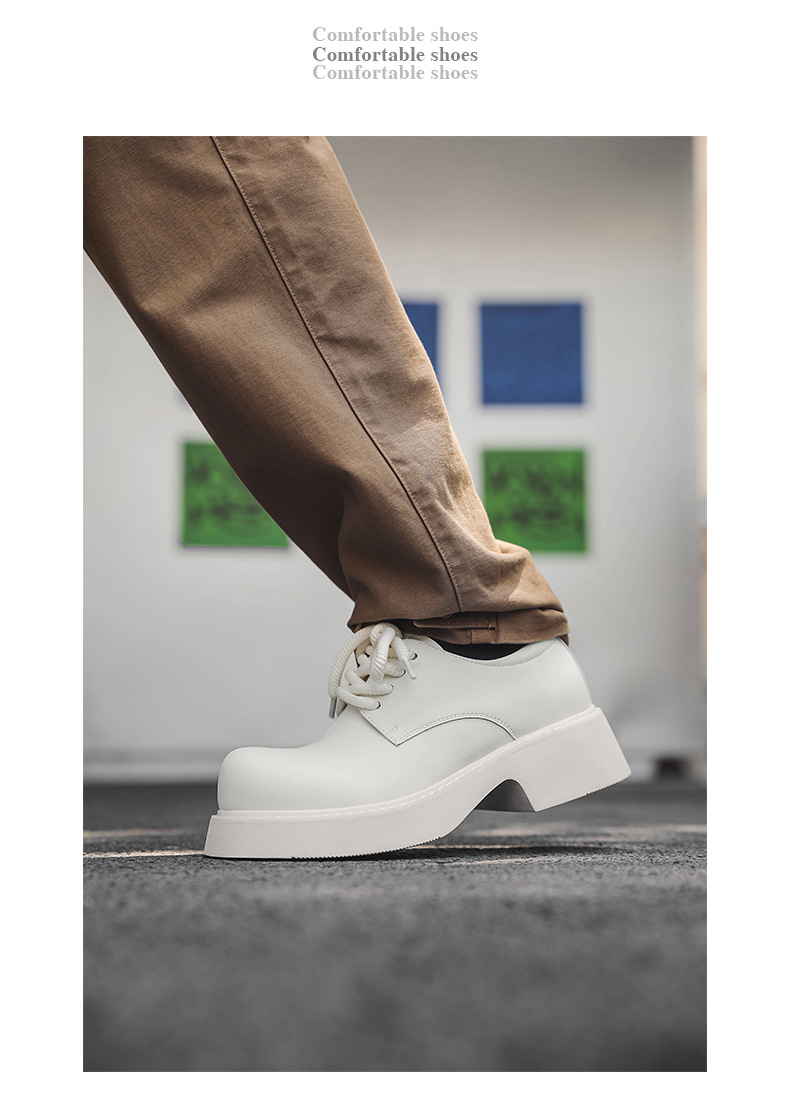 더비 신발 남성 하이 엔드 틈새 플랫폼 높이 증가하는 로우 탑 빅 토 가죽 신발 라운드 토 카본 블랙 비즈니스 통근 남성 신발스토어 가기