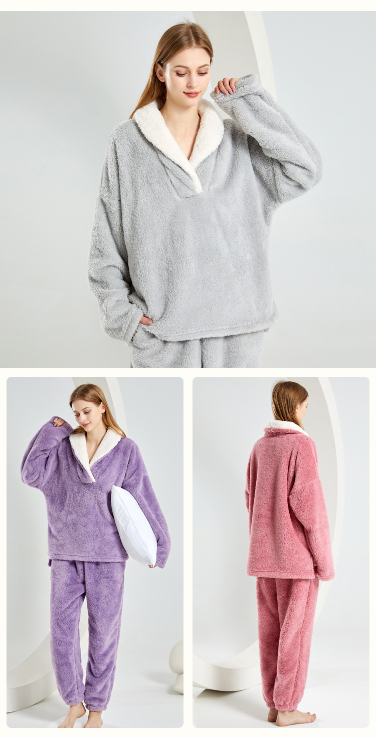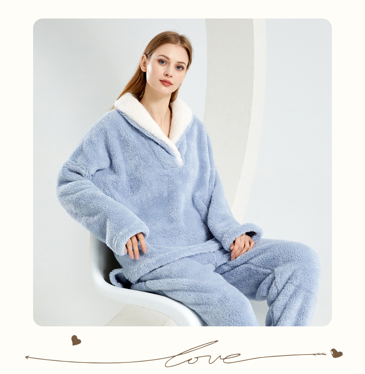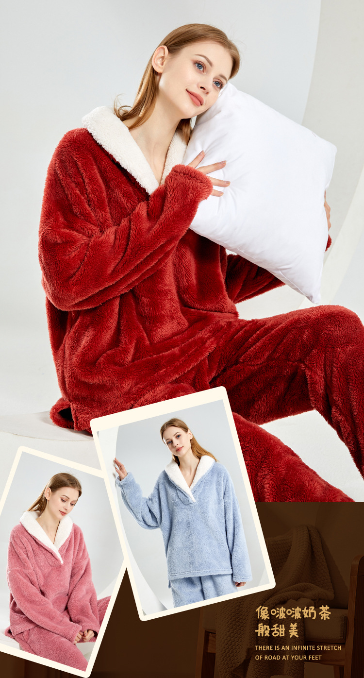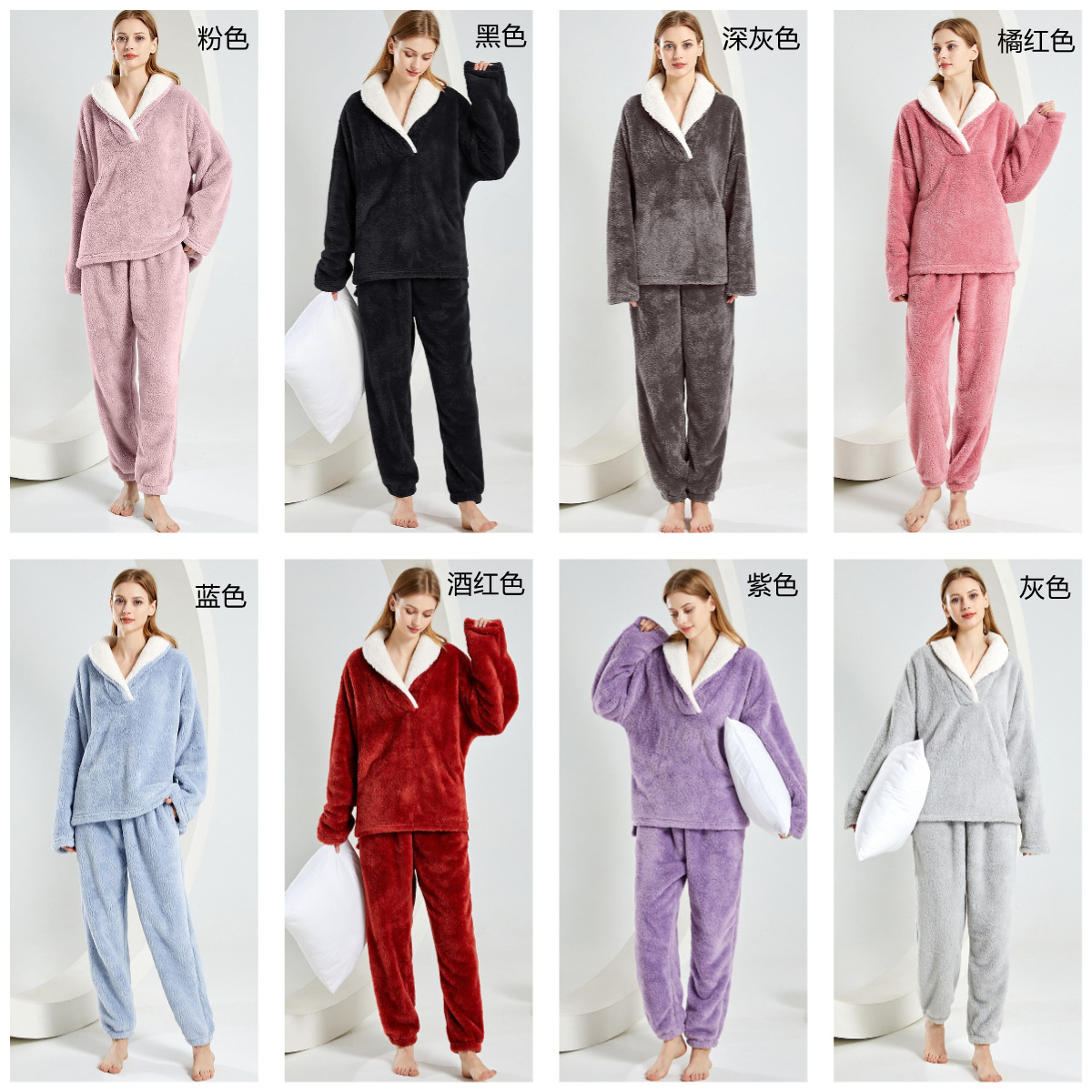 2025 여성을위한 새로운 겨울 슈 코튼 벨벳 잠옷 느슨한 대형 대외 무역 국경 유럽과 미국의 크리스마스 홈웨어 세트