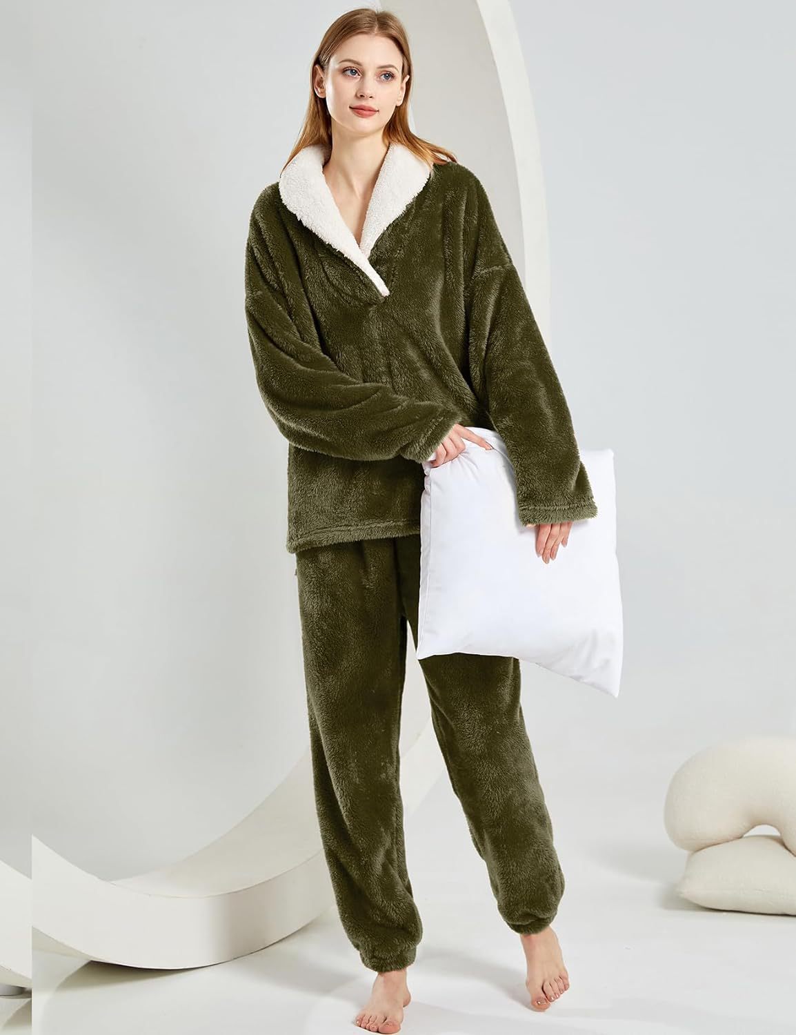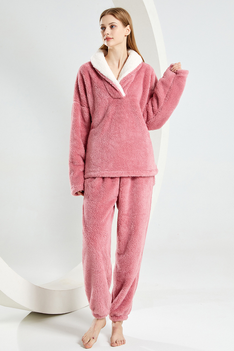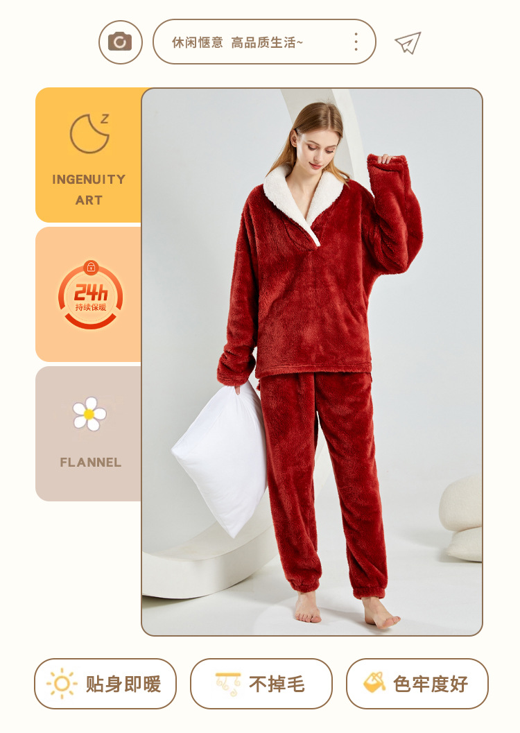 2025 여성을위한 새로운 겨울 슈 코튼 벨벳 잠옷 느슨한 대형 대외 무역 국경 유럽과 미국의 크리스마스 홈웨어 세트