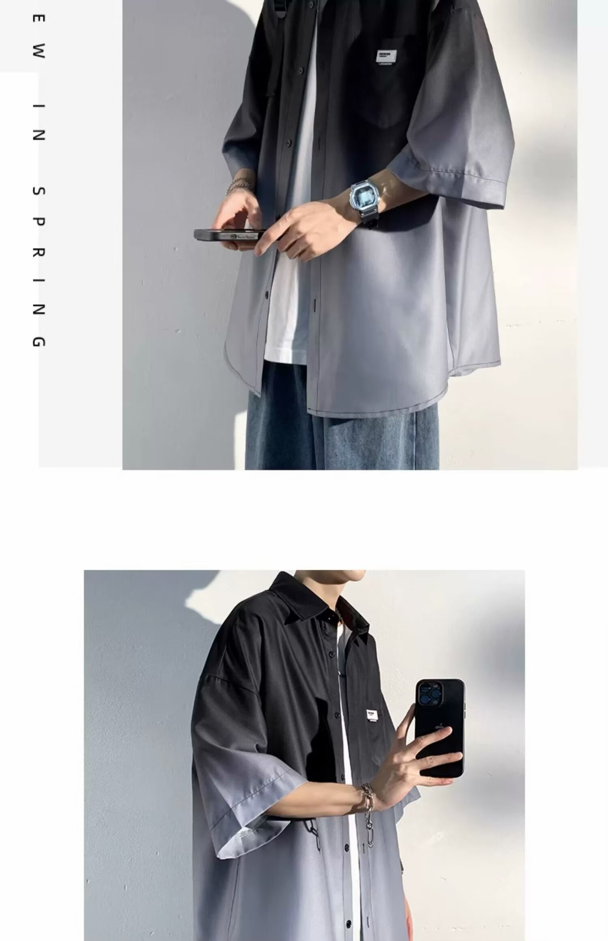 2024 년 여름 얇은 올매치 느슨한 반팔 셔츠 남자 캐주얼 트렌디 브랜드 일본 스타일 홍콩 스타일 십대 표기스토어 가기
