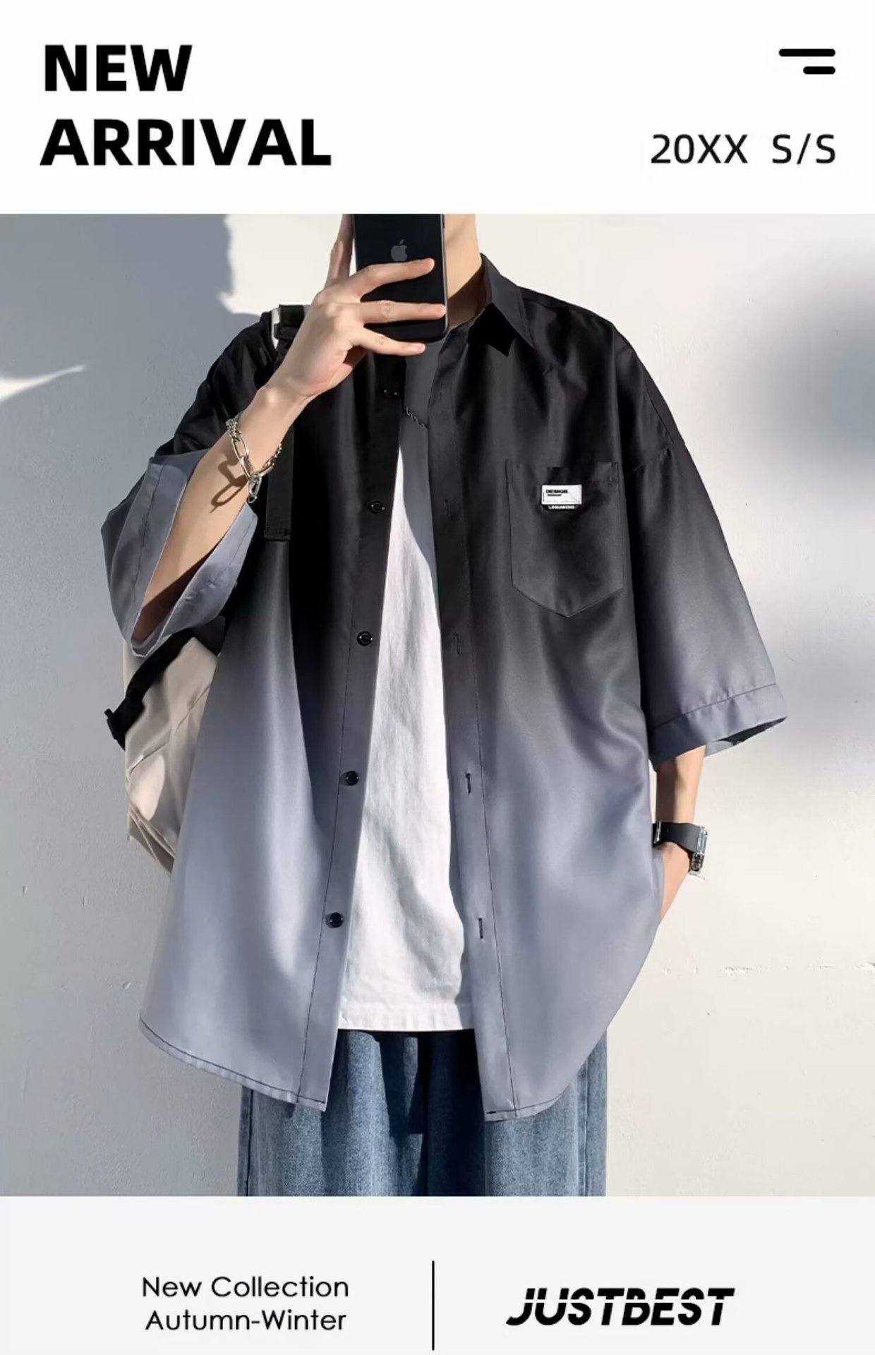2024 년 여름 얇은 올매치 느슨한 반팔 셔츠 남자 캐주얼 트렌디 브랜드 일본 스타일 홍콩 스타일 십대 표기