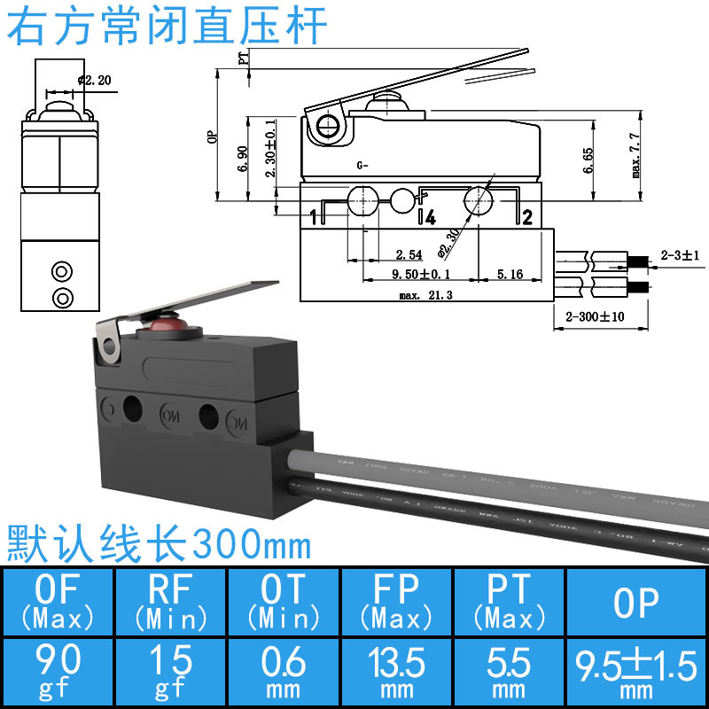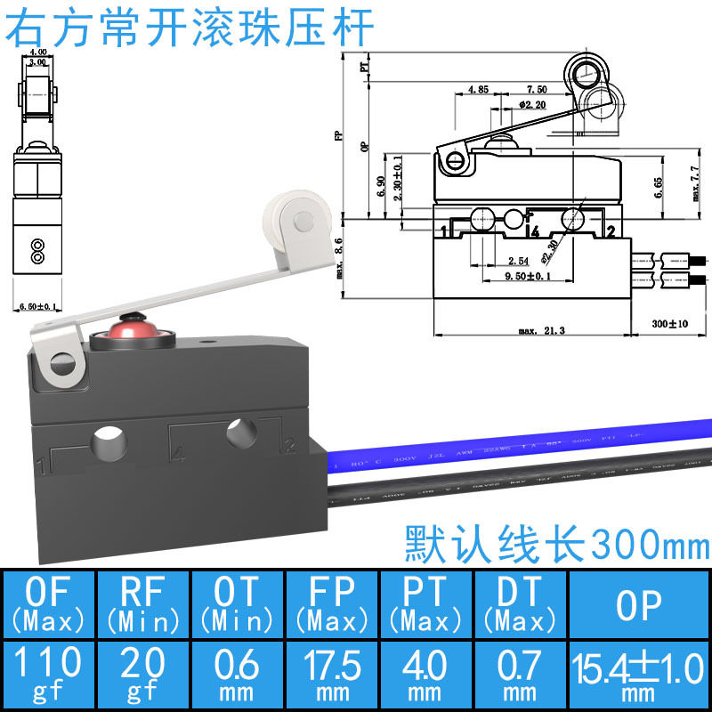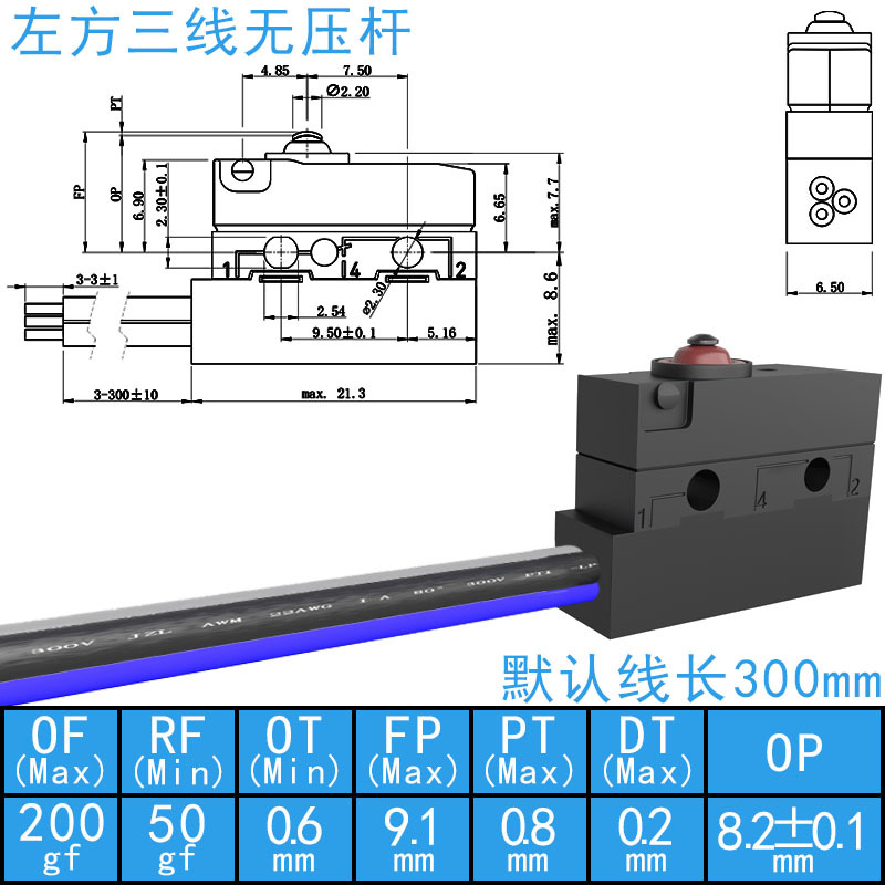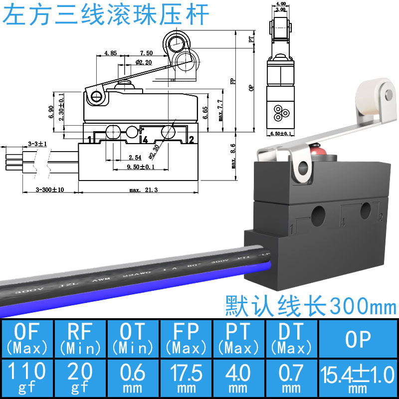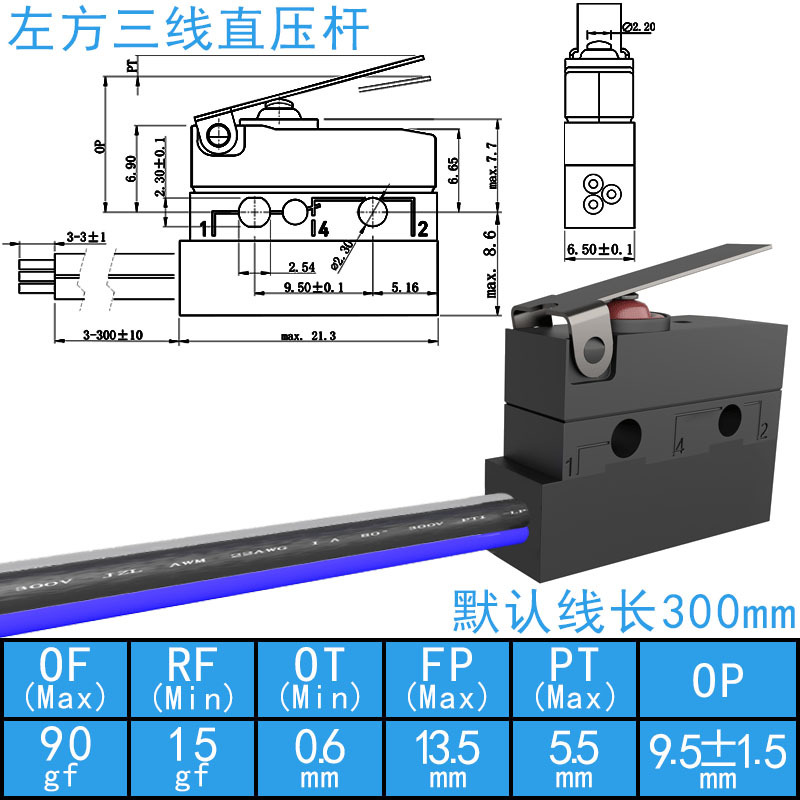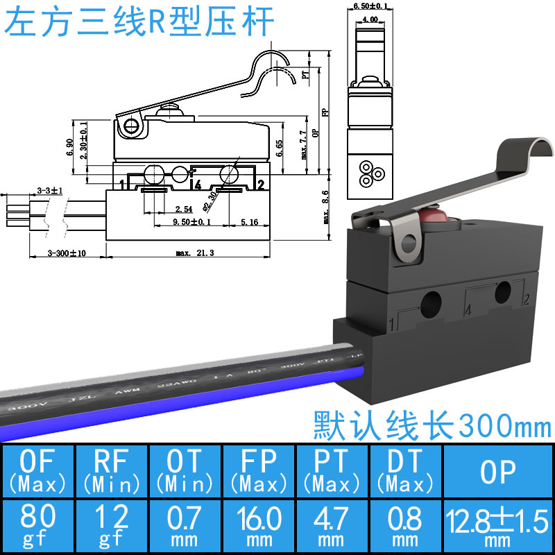 케이시밍 IP67 등급 방수 마이크로 스위치(와이어 포함) 3핀 트립 여행 제한 스위치 감지