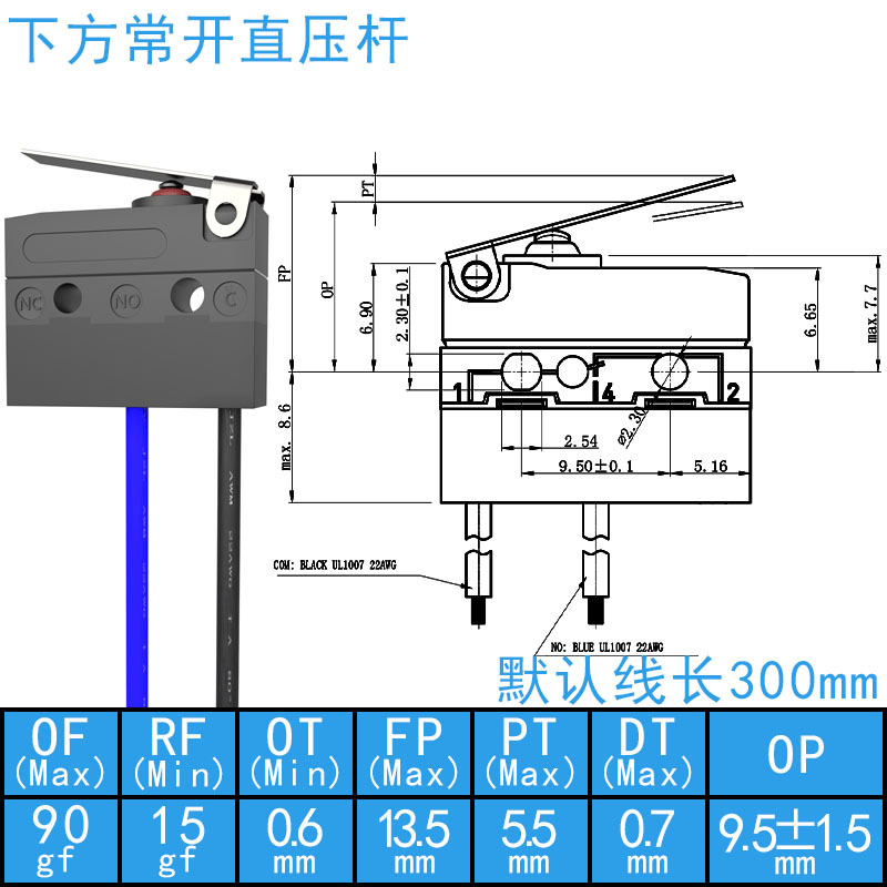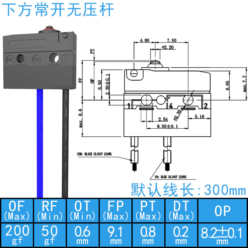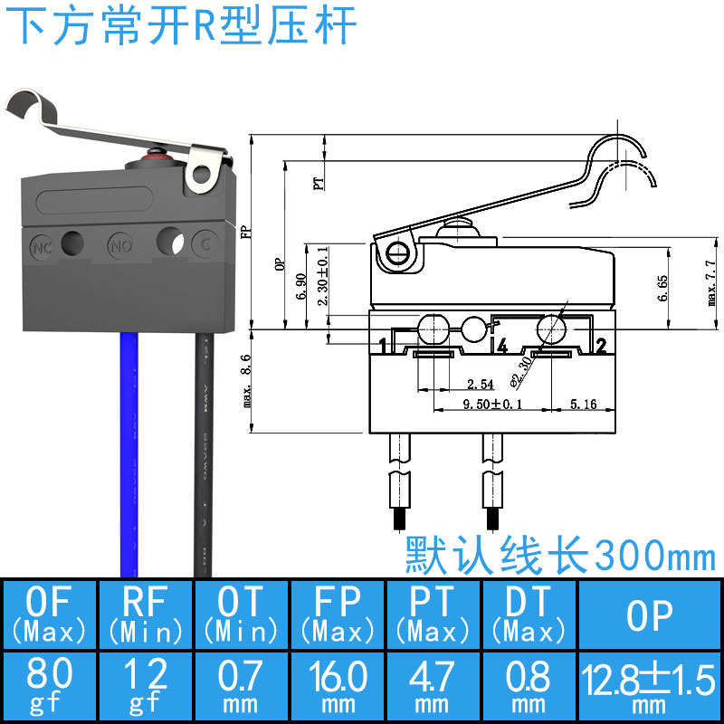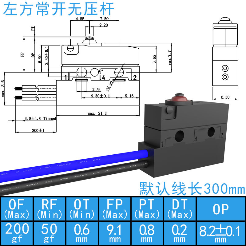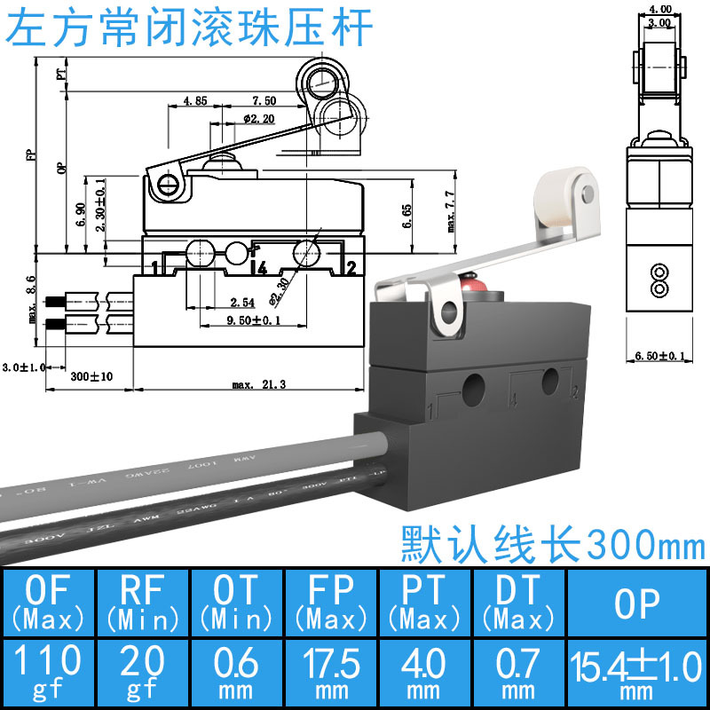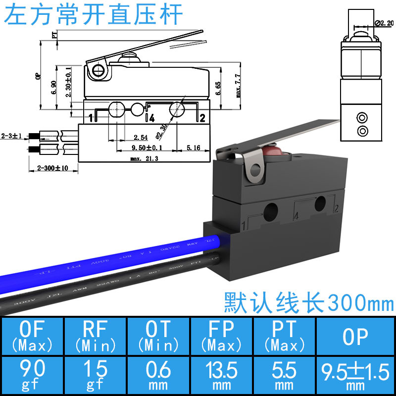 케이시밍 IP67 등급 방수 마이크로 스위치(와이어 포함) 3핀 트립 여행 제한 스위치 감지