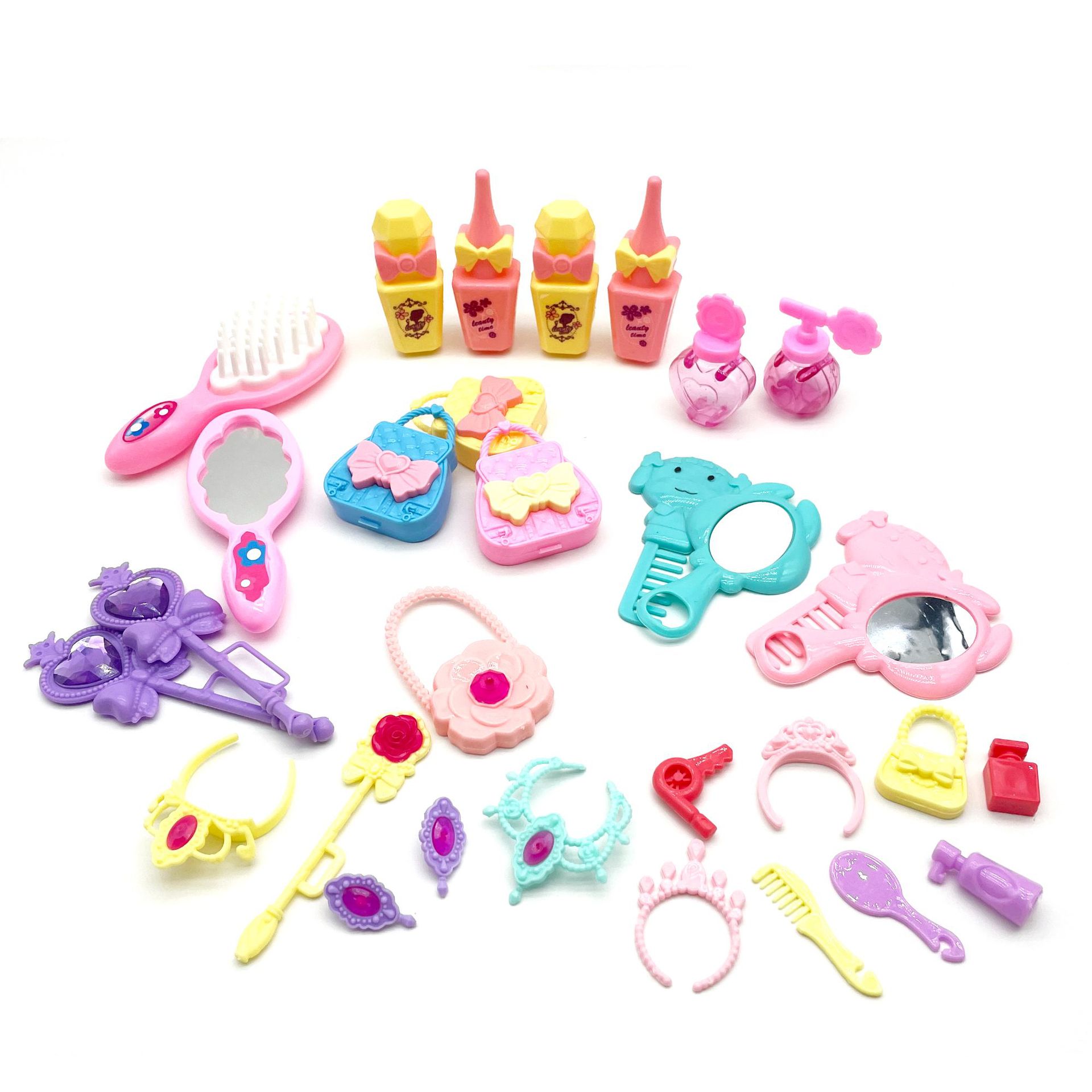 도매 인형 장난감 액세서리 어린이 놀이 집 액세서리 향수 병 거울 빗 가방 마술 스틱 지팡이