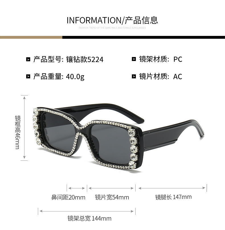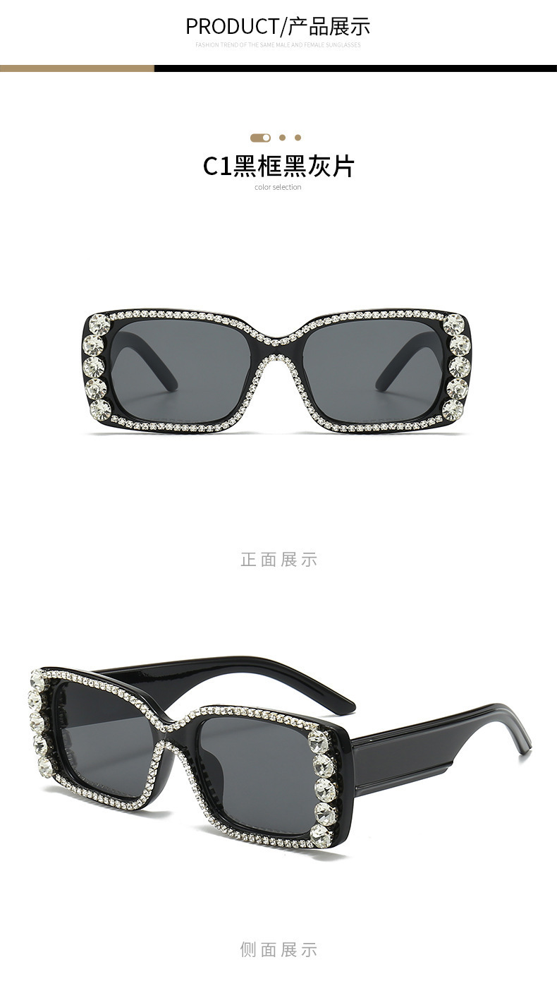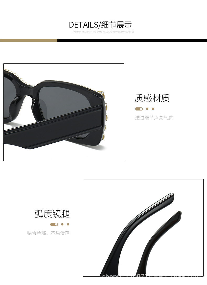 유럽과 미국의 새로운 패션 다이아몬드가 박힌 광장 선글라스 국경 여성 우아한 고급 선글라스 맞춤형 선글라스스토어 가기