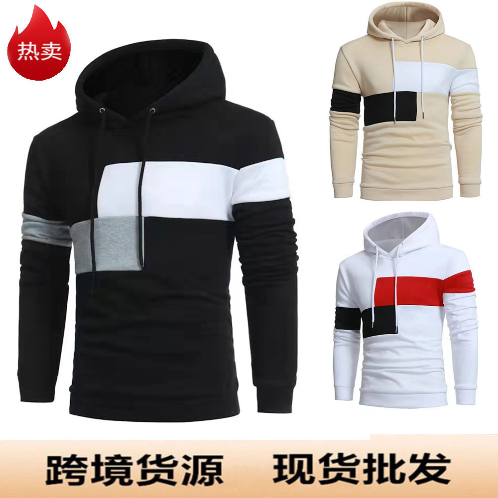 새로운 남성 패션 크로싱 컬러 풀오버 스웨터 국경 가을과 겨울 기모 남자 캐주얼 스포츠 후드