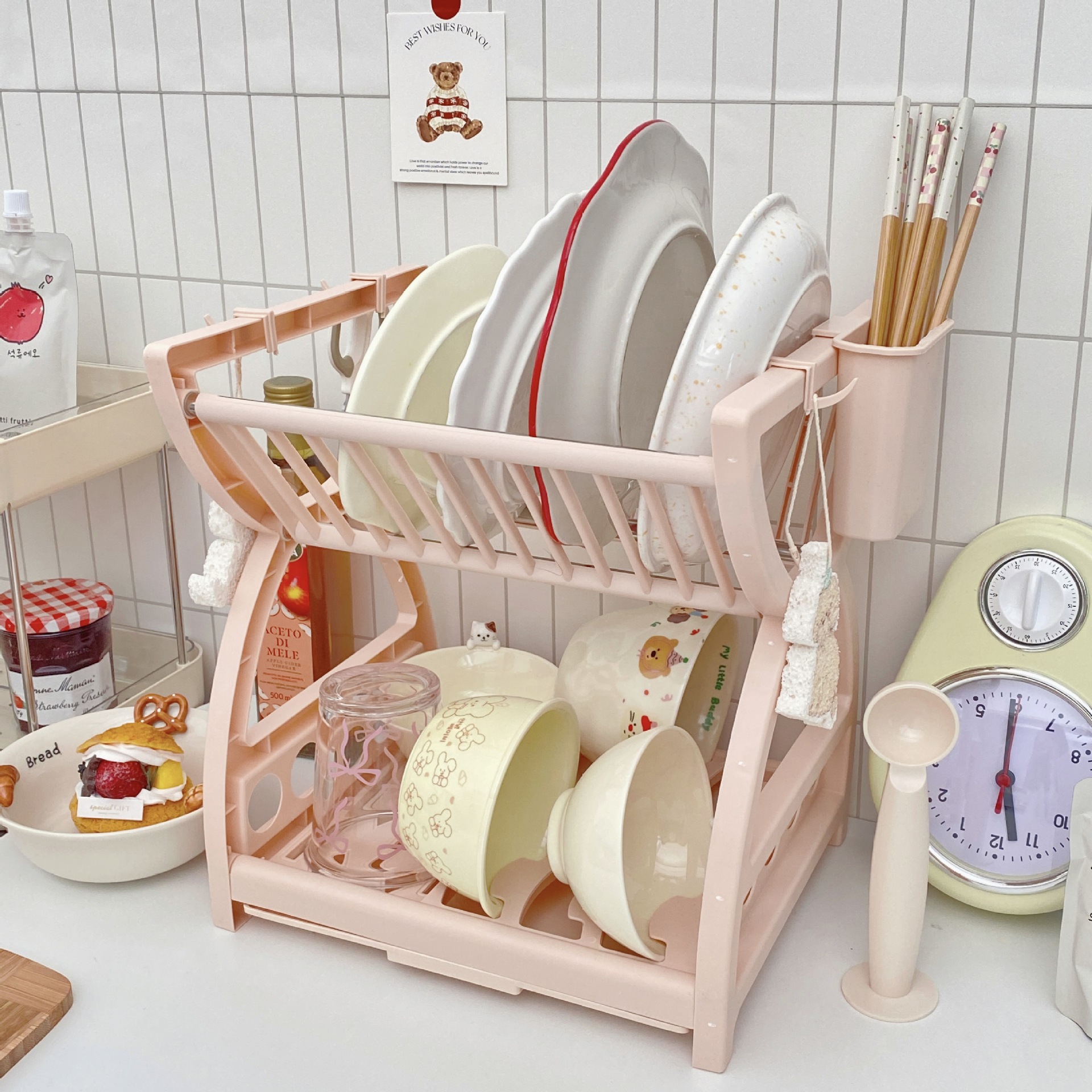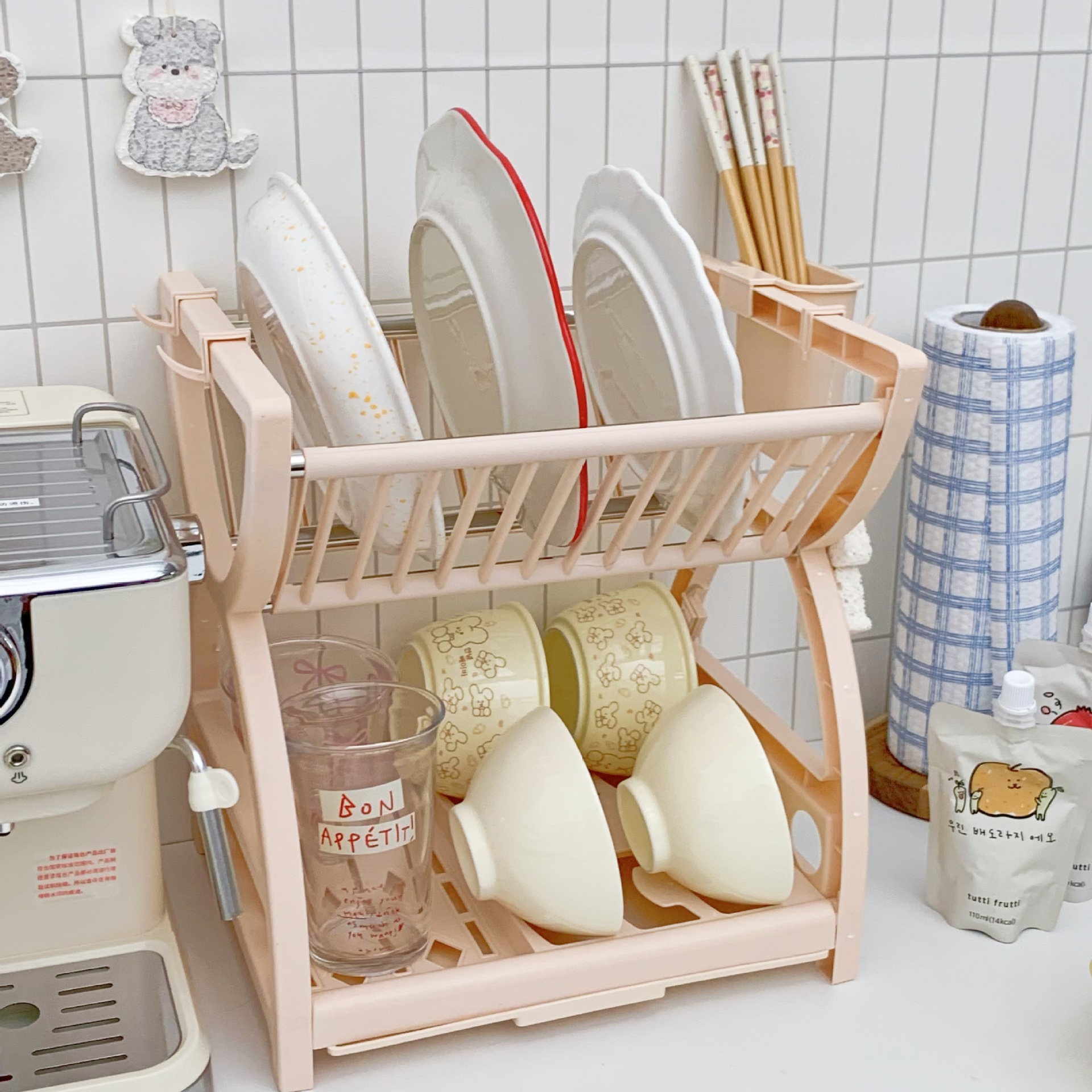 간단한 스타일의 주방 수납 선반, 접시, 젓가락, 칼, 다기능 수납 선반, 2층 식기 배수 선반 수납 상자