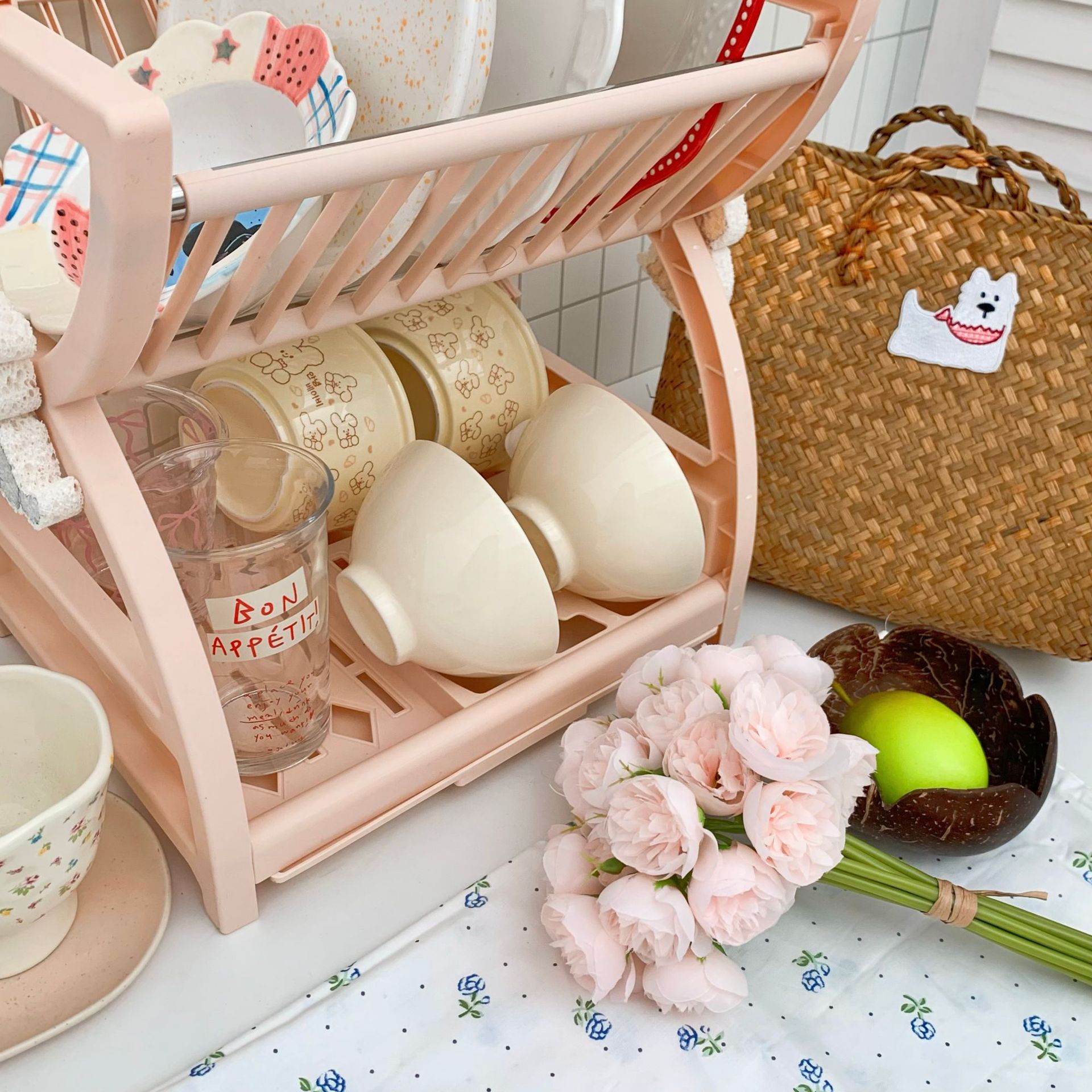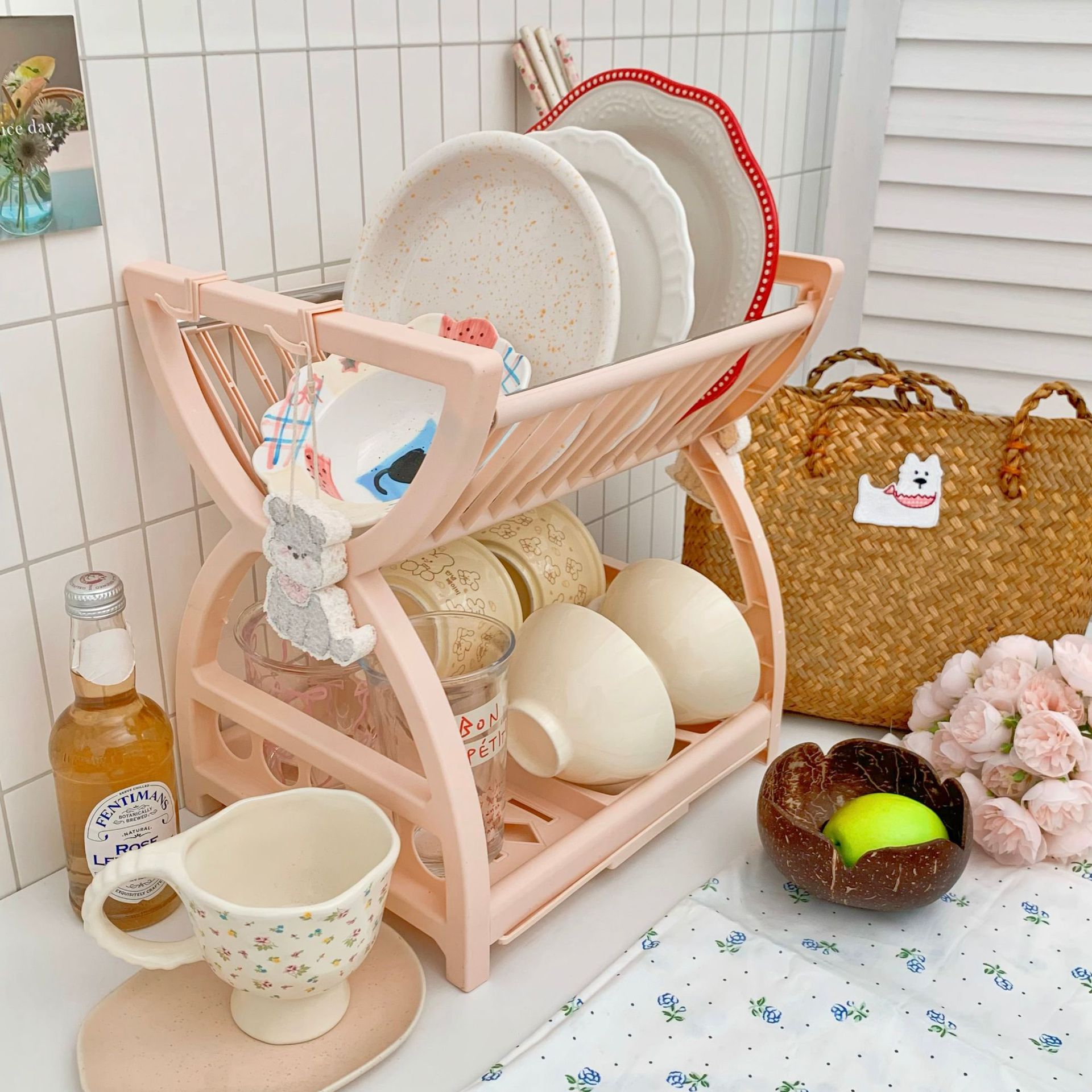 간단한 스타일의 주방 수납 선반, 접시, 젓가락, 칼, 다기능 수납 선반, 2층 식기 배수 선반 수납 상자스토어 가기