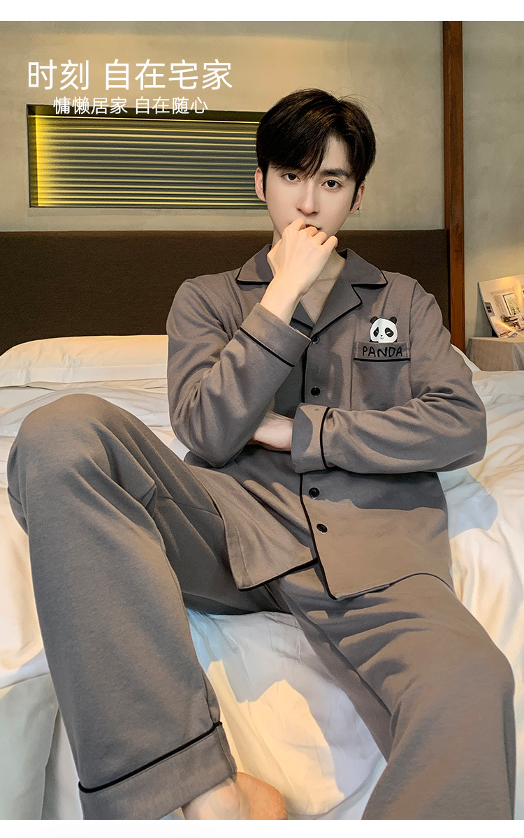 엄격한 선택 남자 잠옷 봄과 가을 코튼 긴 소매 새로운 느슨한 플러스 사이즈 십대 소년은 홈 옷을 입을 수 있습니다