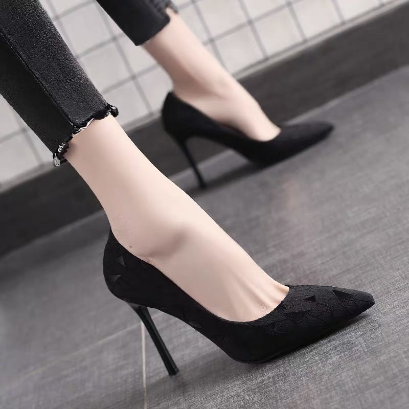 블랙하이힐 여자 2024 신형 한국식 올매치 포인팅된 발가락 섹시 사이버 셀러런트 얇은 뒤꿈치 신발 여성용 얕은 입 작업 신발스토어 가기