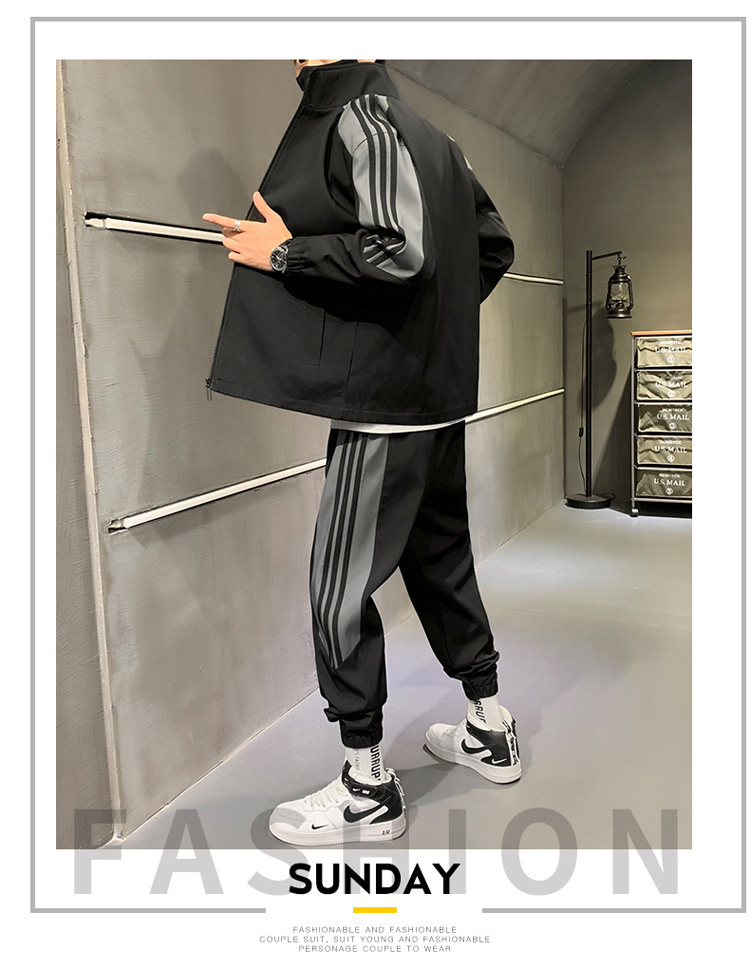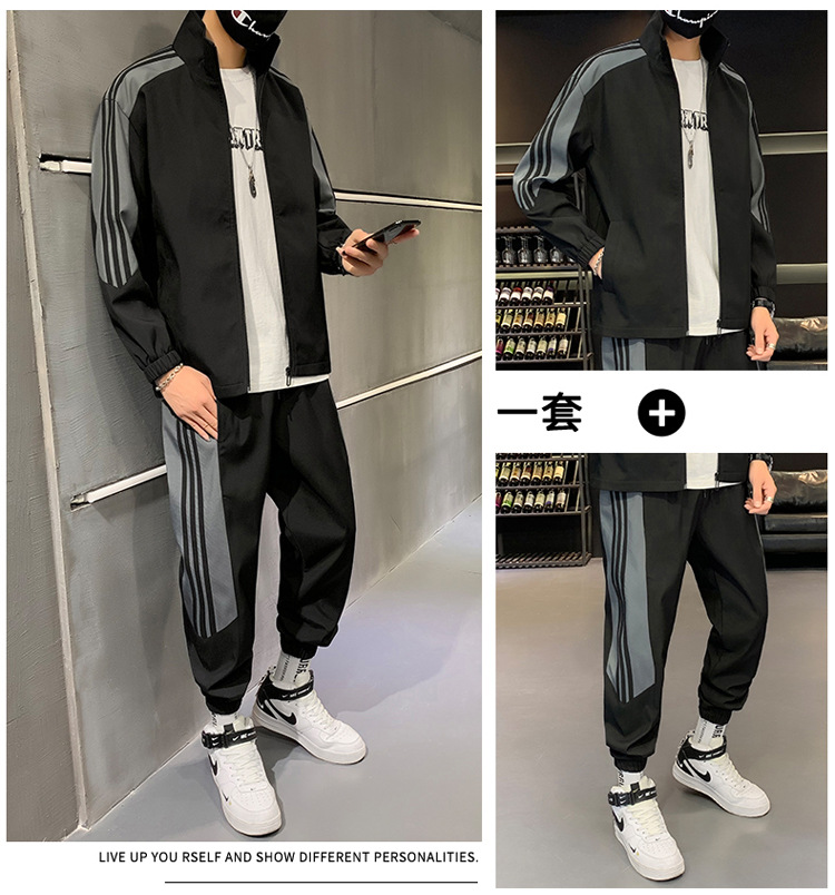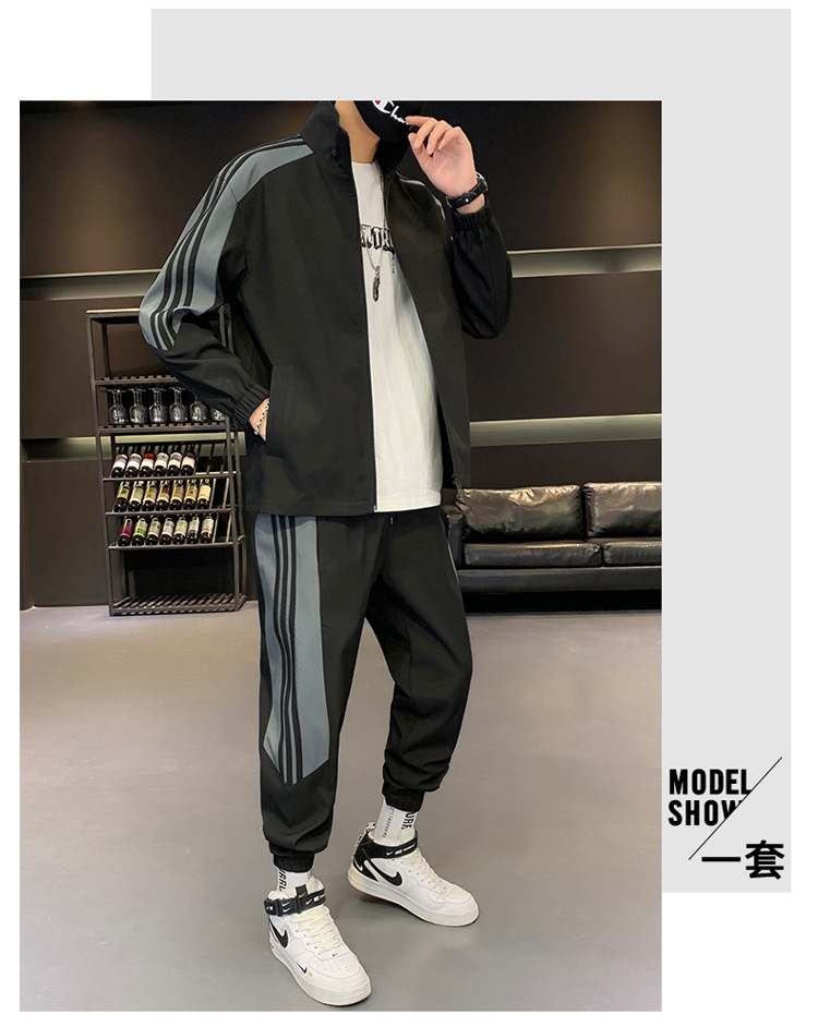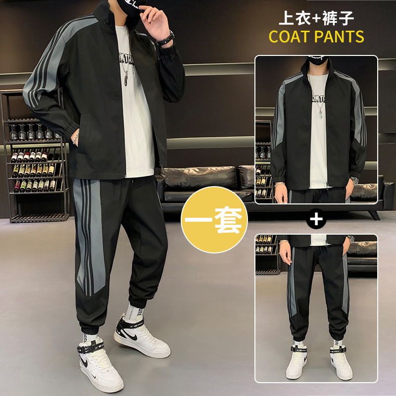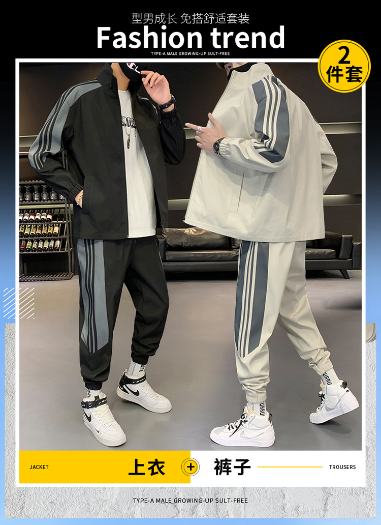 봄, 가을 남성용 프린트 스포츠 슈트, 트렌디한 캐주얼 청소년 바지 슈트, 남성용 대형 사이즈스토어 가기