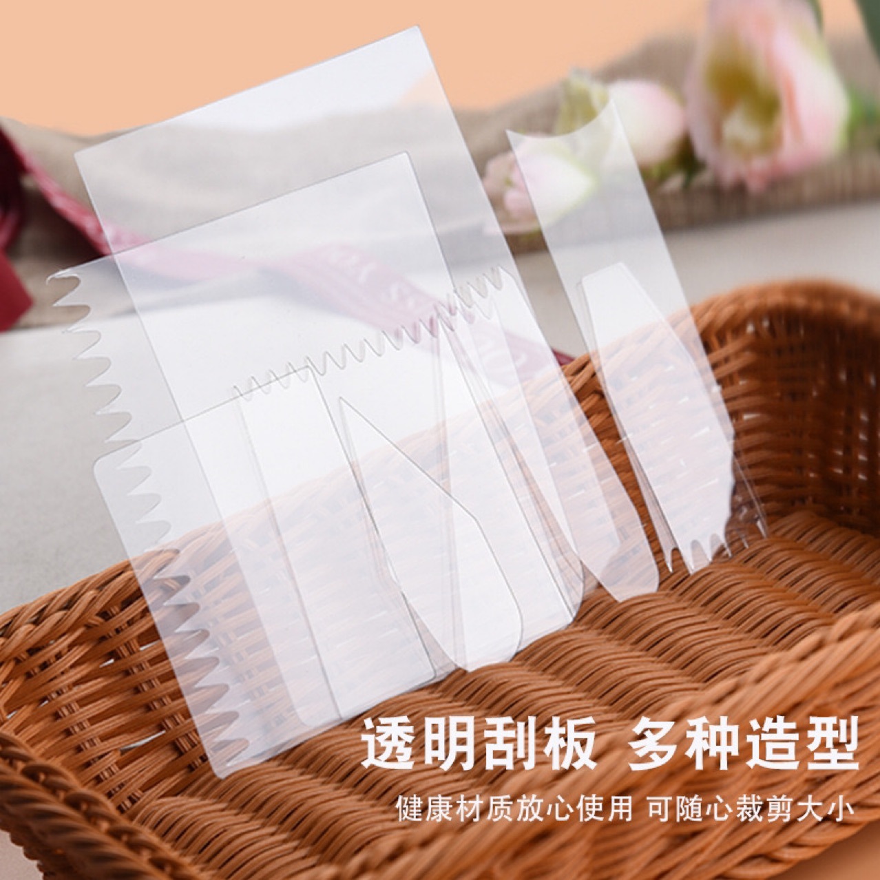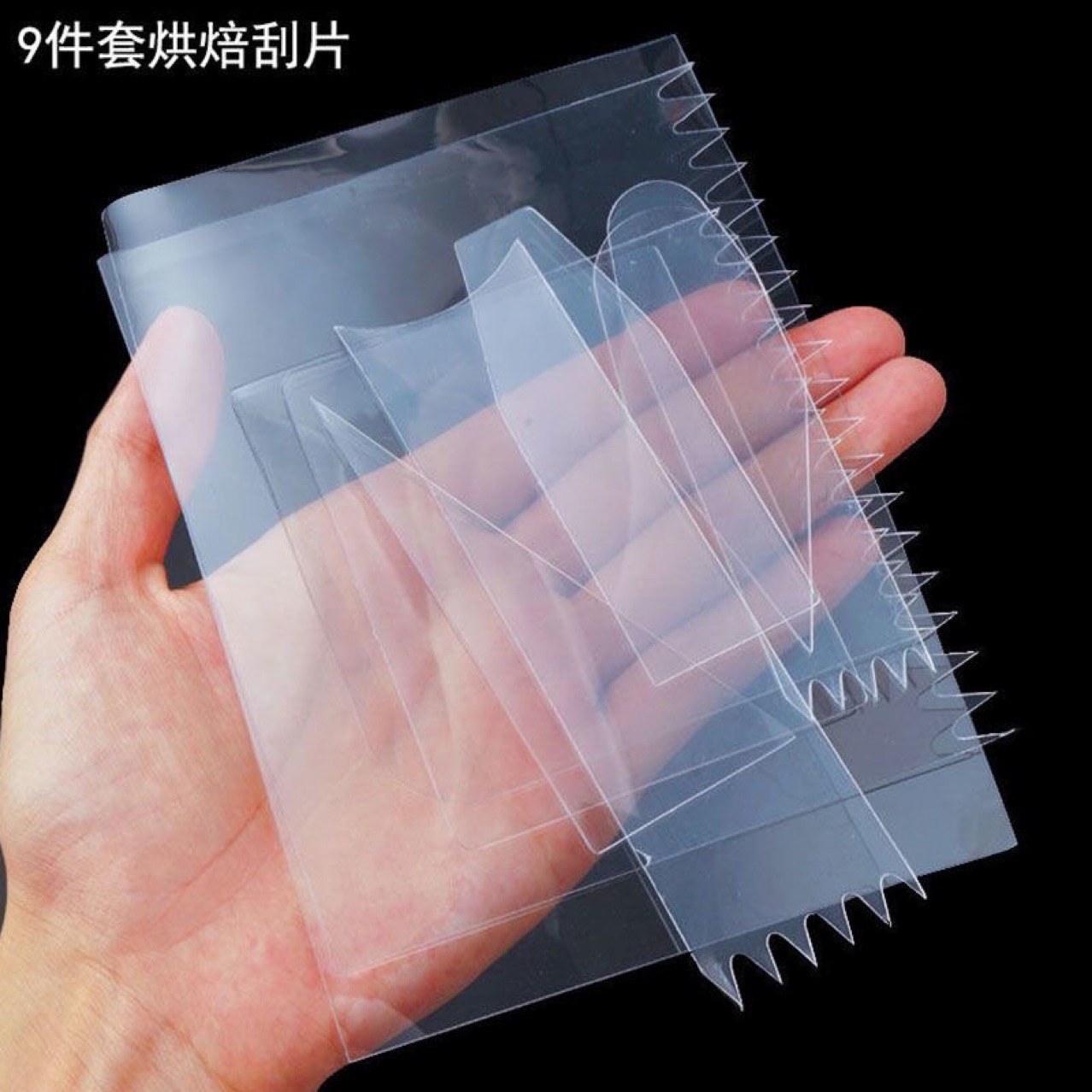 투명 플라스틱 부드러운 스크레이퍼 케이크 크림 스무딩 스크레이퍼 이빨 스크레이퍼 케이크 장식 베이킹 도구 9 피스 세트