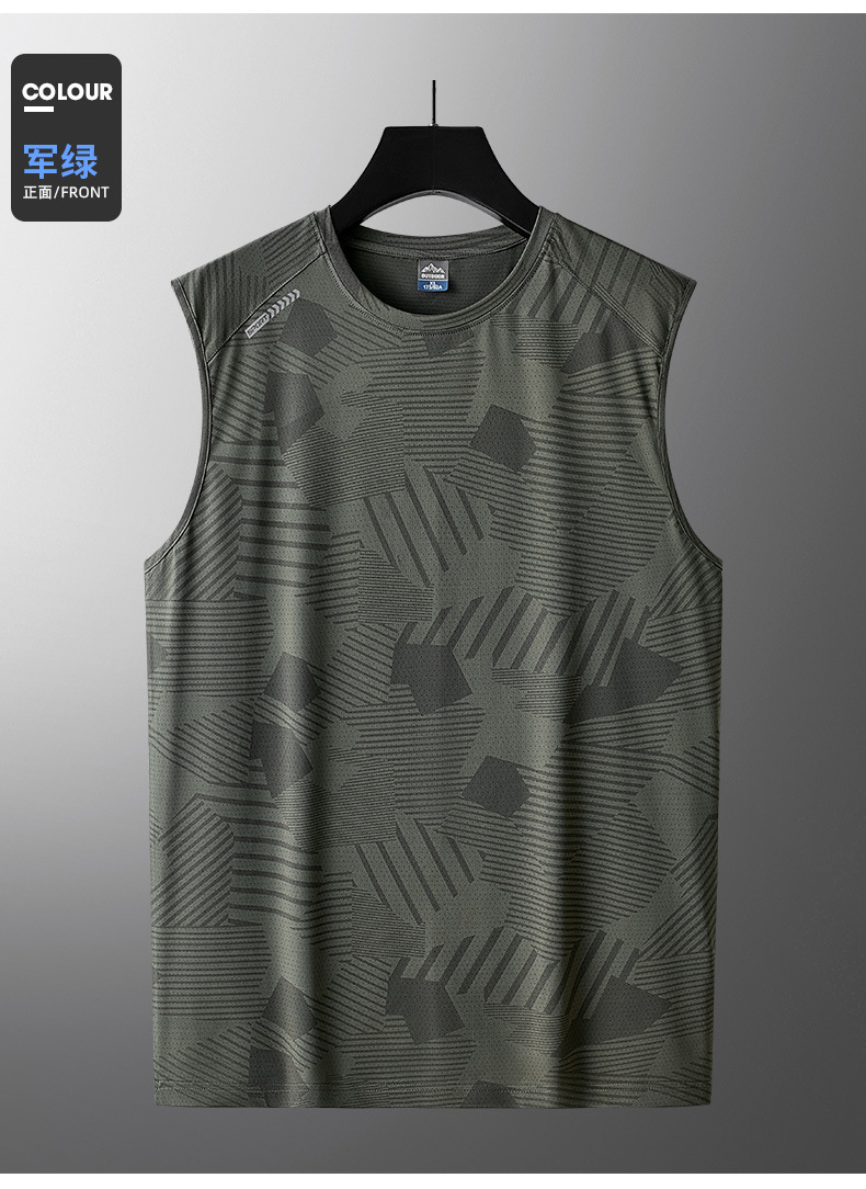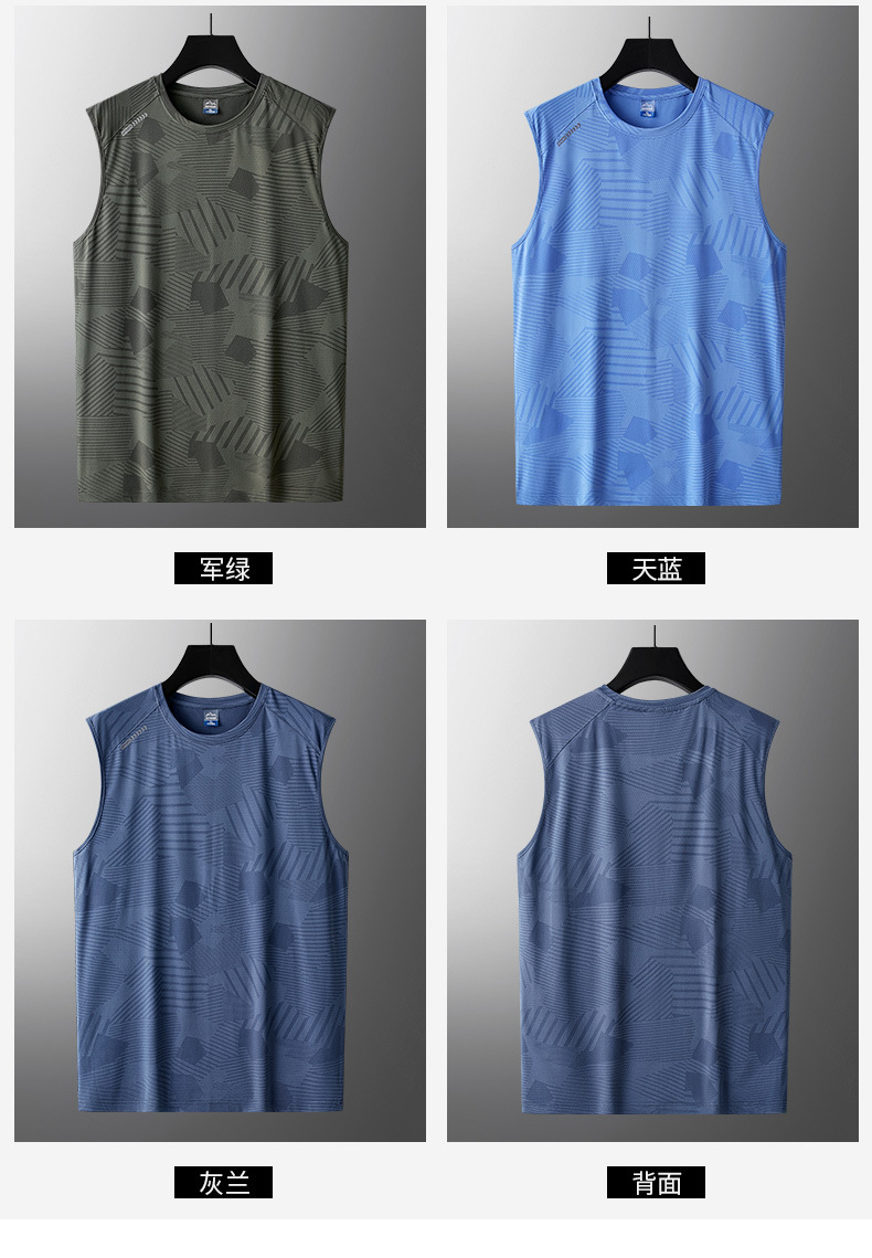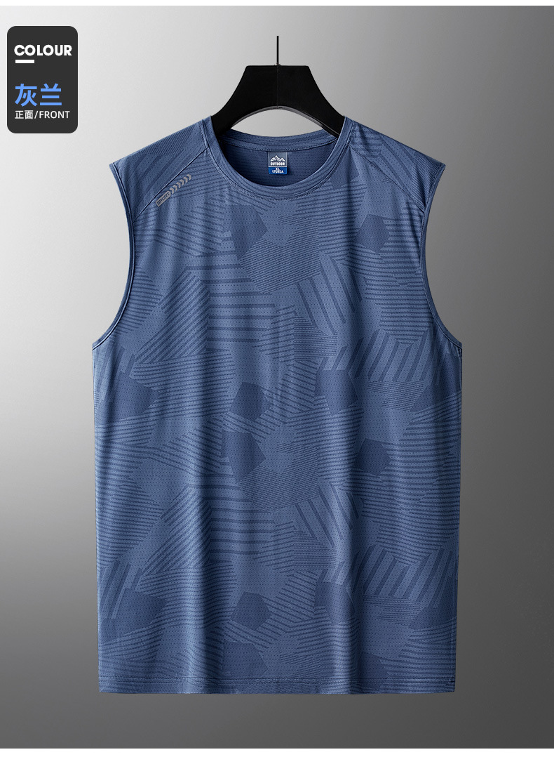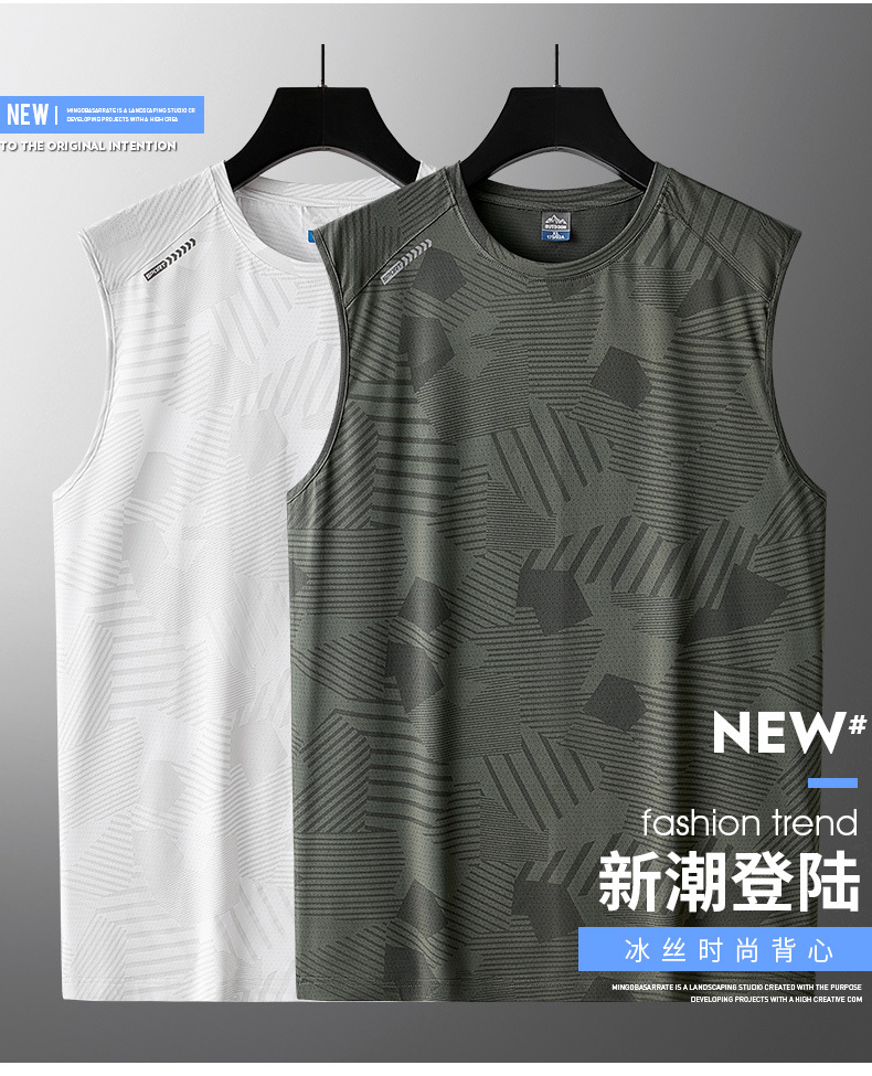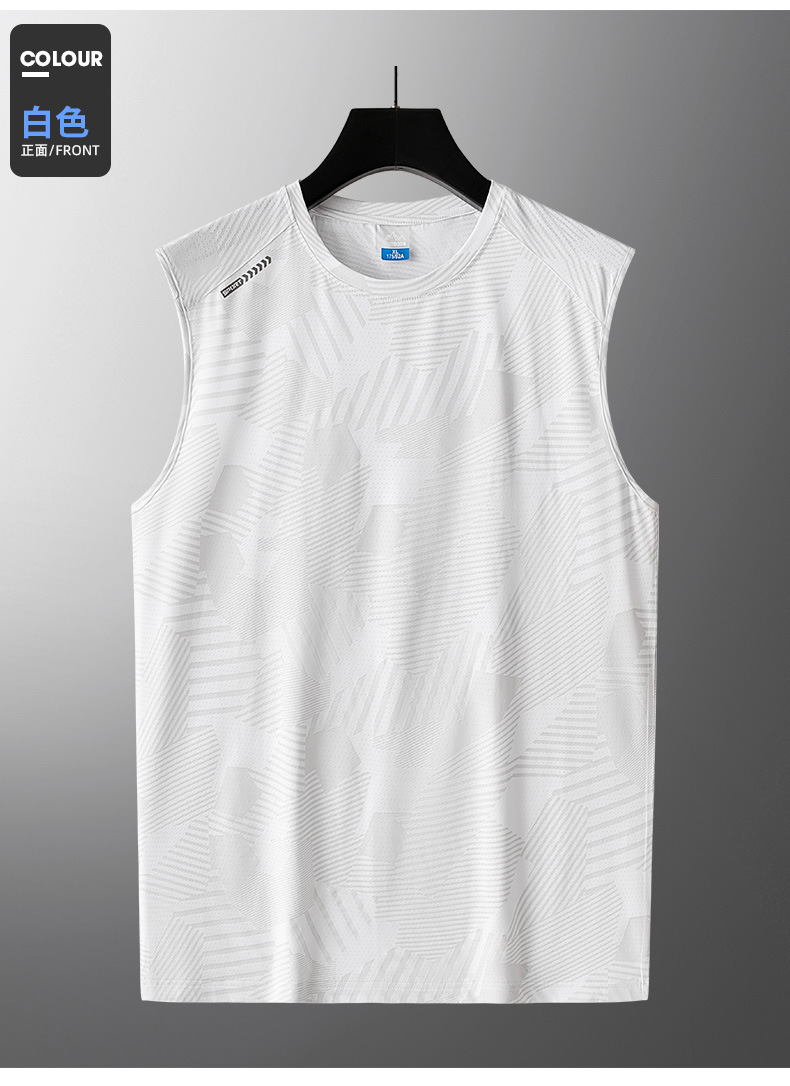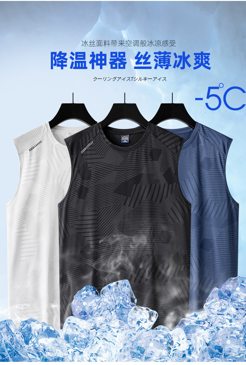 플러스 사이즈 아이스 실크 조끼 남성용 민소매 허리 코트 반팔 티셔츠 트렌디 남성용 루즈 퀵 드라이 아이스 씬 스포츠 탑