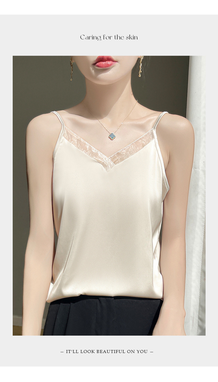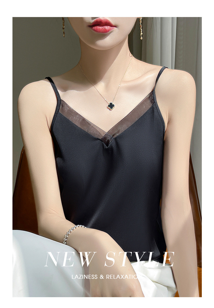 간단한 전문 세트 실크 새틴베이스와 여성 V 넥 카미솔 봄과 여름 새로운 스타일 아름다운 뒷면 탑스토어 가기