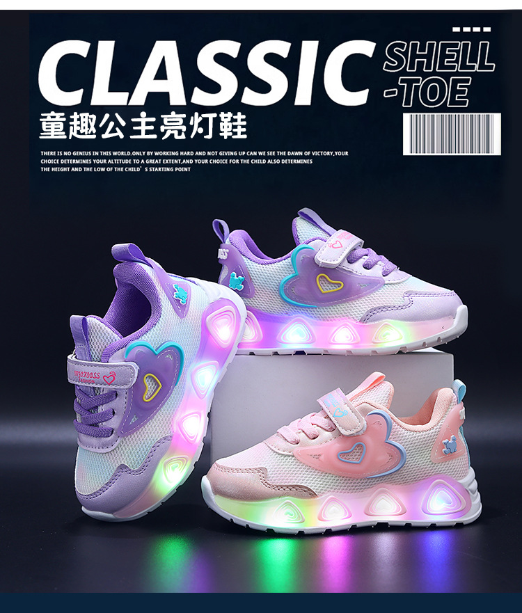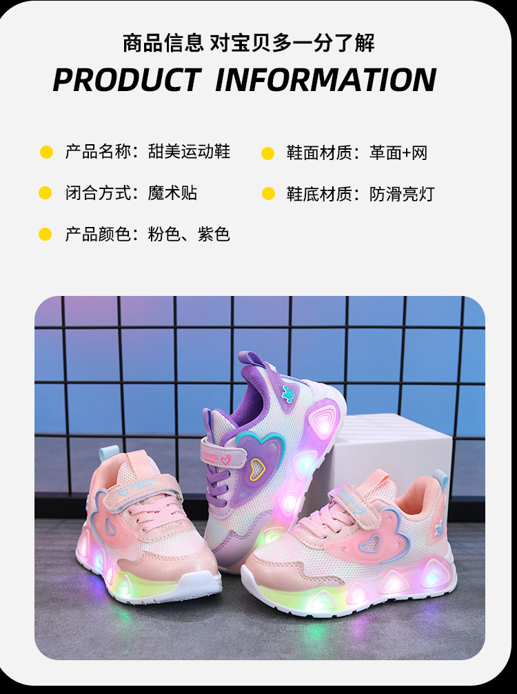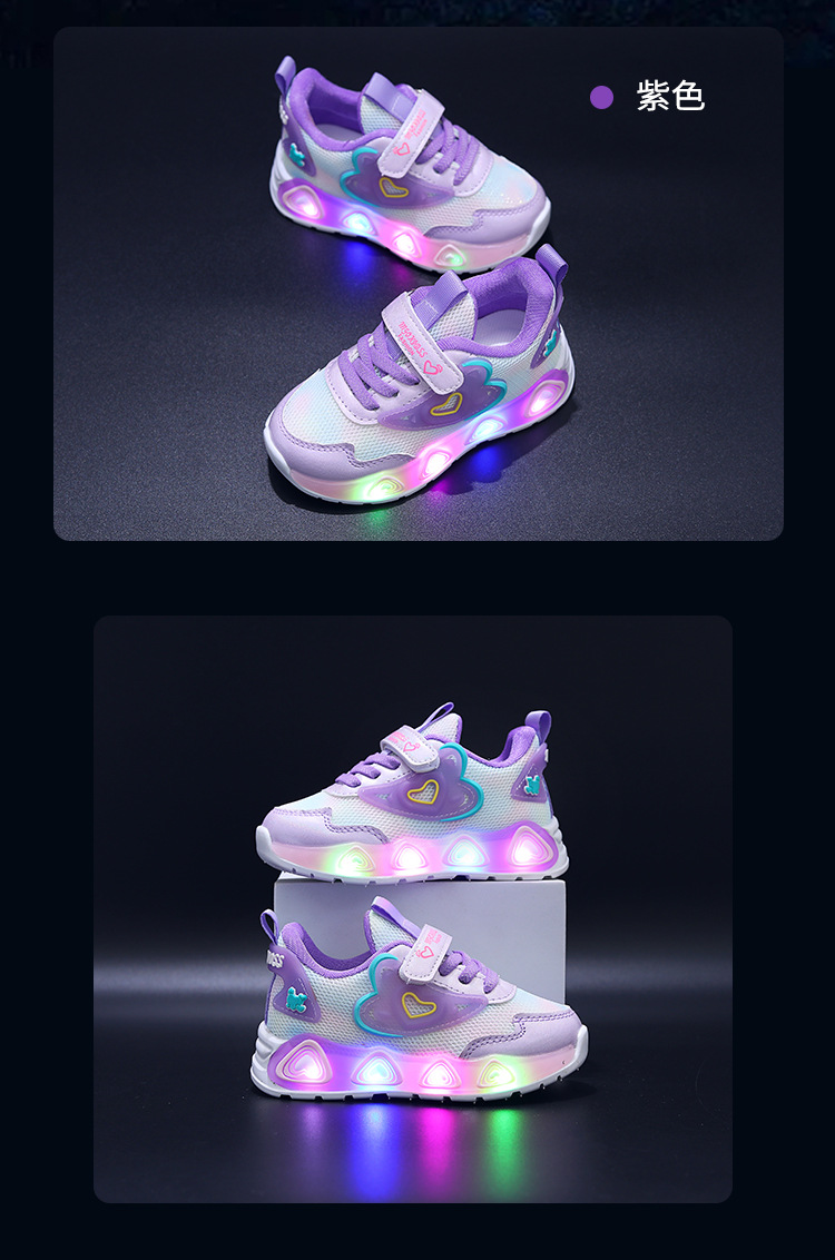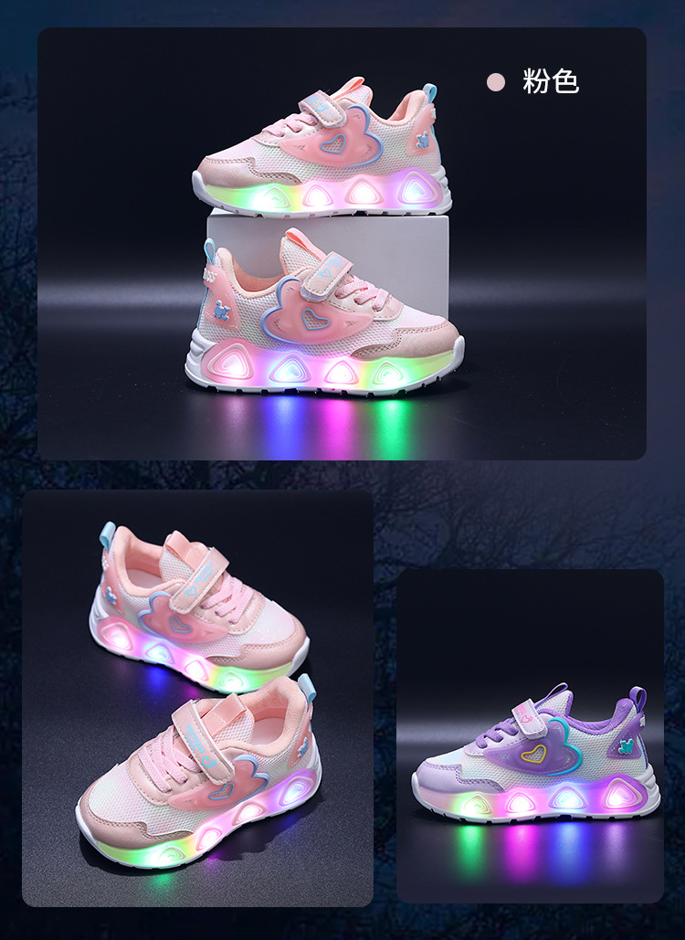 빛나는 신발 통기성 2024 새로운 공주 패션 사랑 빛 신발 1-6 세 LED 빛 신발 캐주얼 신발 운동화