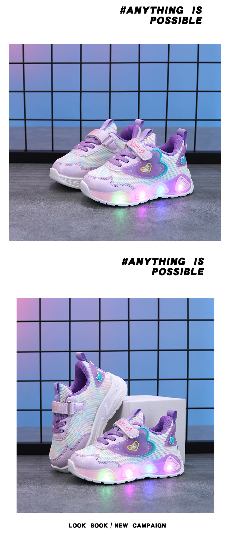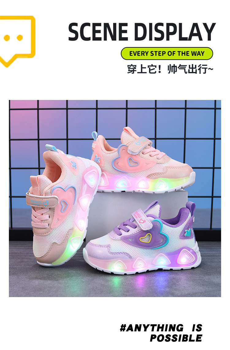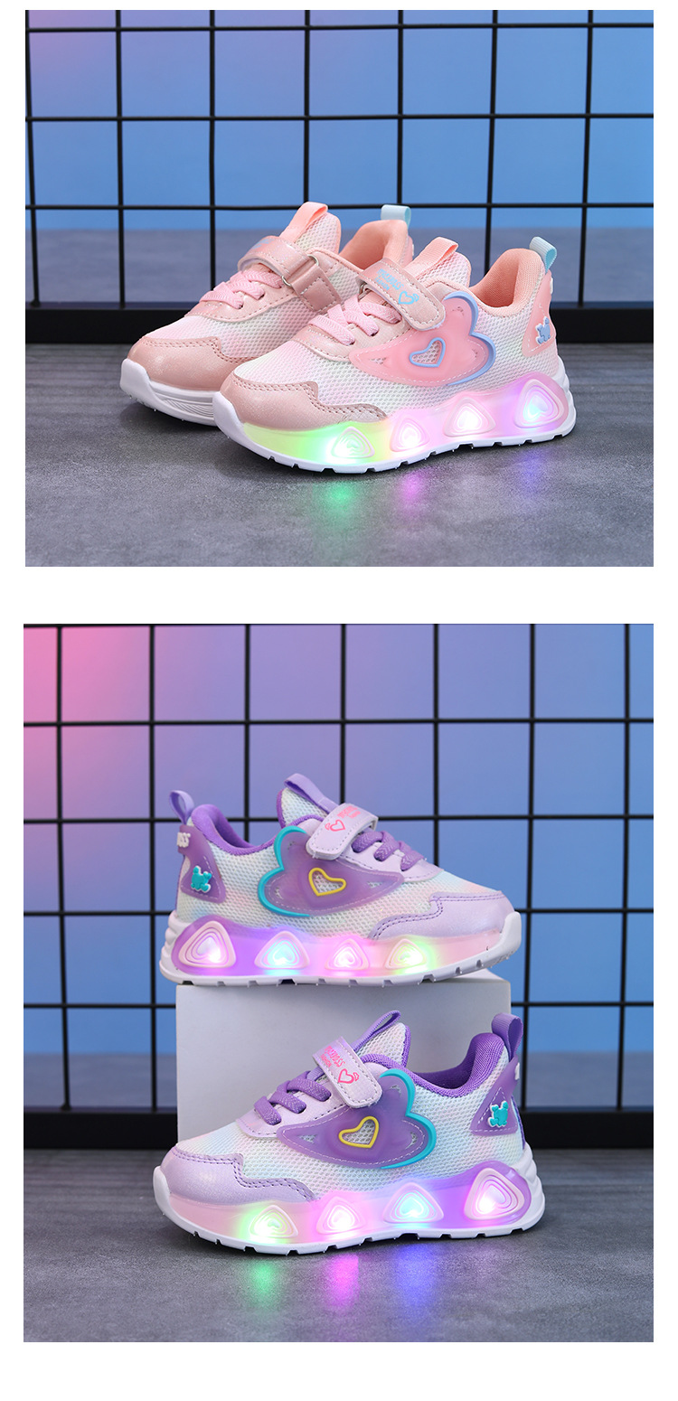 빛나는 신발 통기성 2024 새로운 공주 패션 사랑 빛 신발 1-6 세 LED 빛 신발 캐주얼 신발 운동화스토어 가기