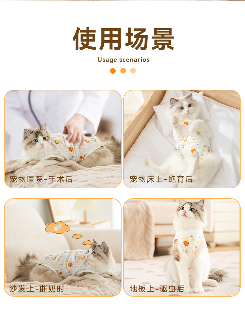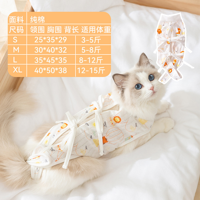 만화 귀여운 바람 고양이 살균 세트 스트랩을 착용하고 벗기 쉬운 수술 후 안티 핥기 통기성 애완 동물 고양이 옷