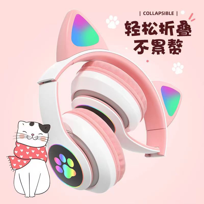 고양이 시리즈 고양이 귀 빛나는 블루투스 공장 직접 국경 간 폭발 호흡 라이트 헤드셋 블루투스 헤드셋스토어 가기