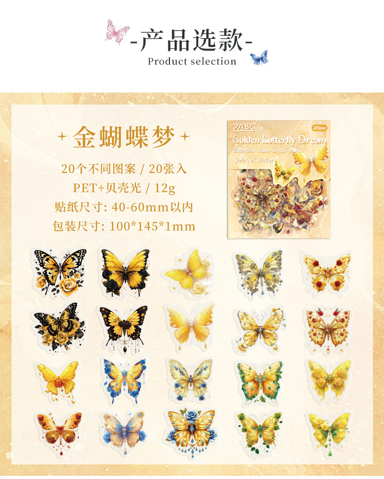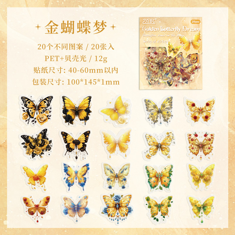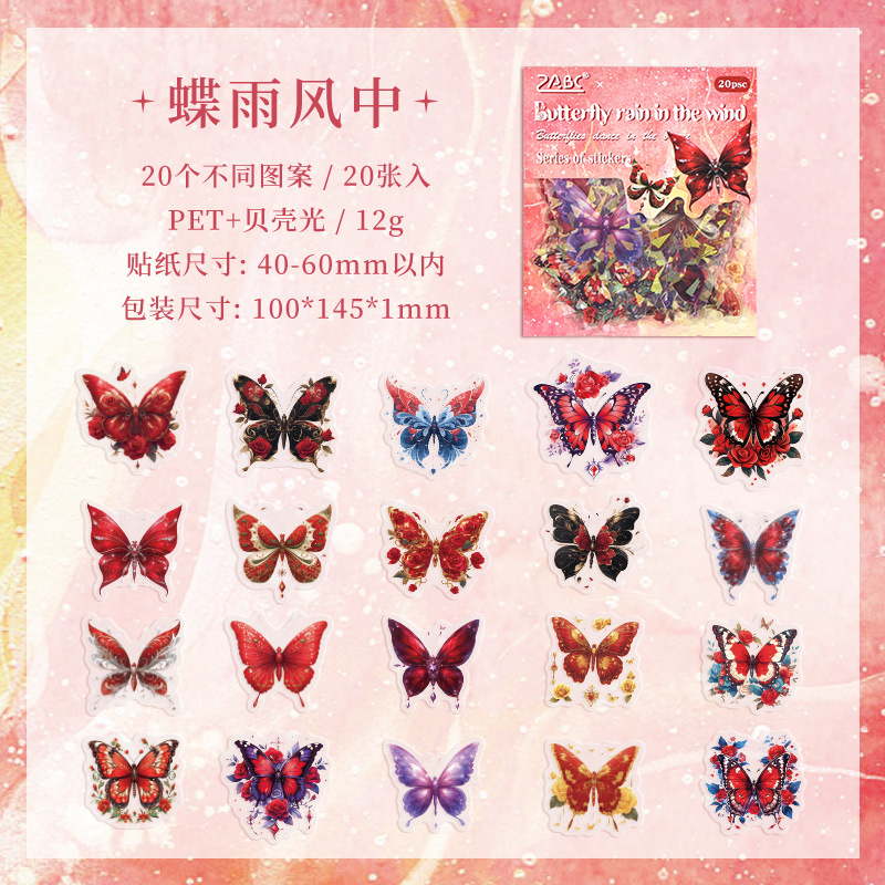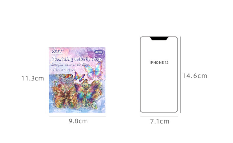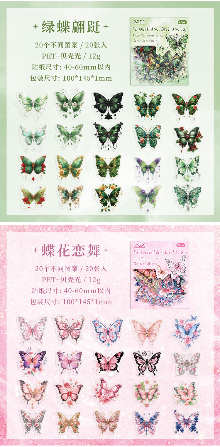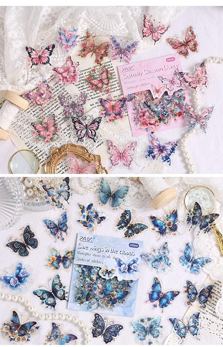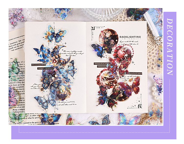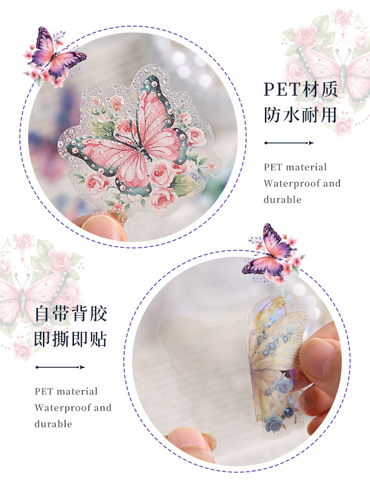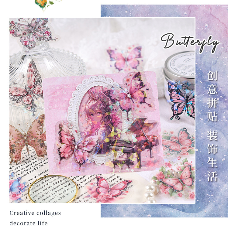 예쁜 나비와 바람이 만난 크로스보더 레이저 크리에이티브 스티커 팩 DIY 핸드북 소재 방수 PET 핸드북 스티커