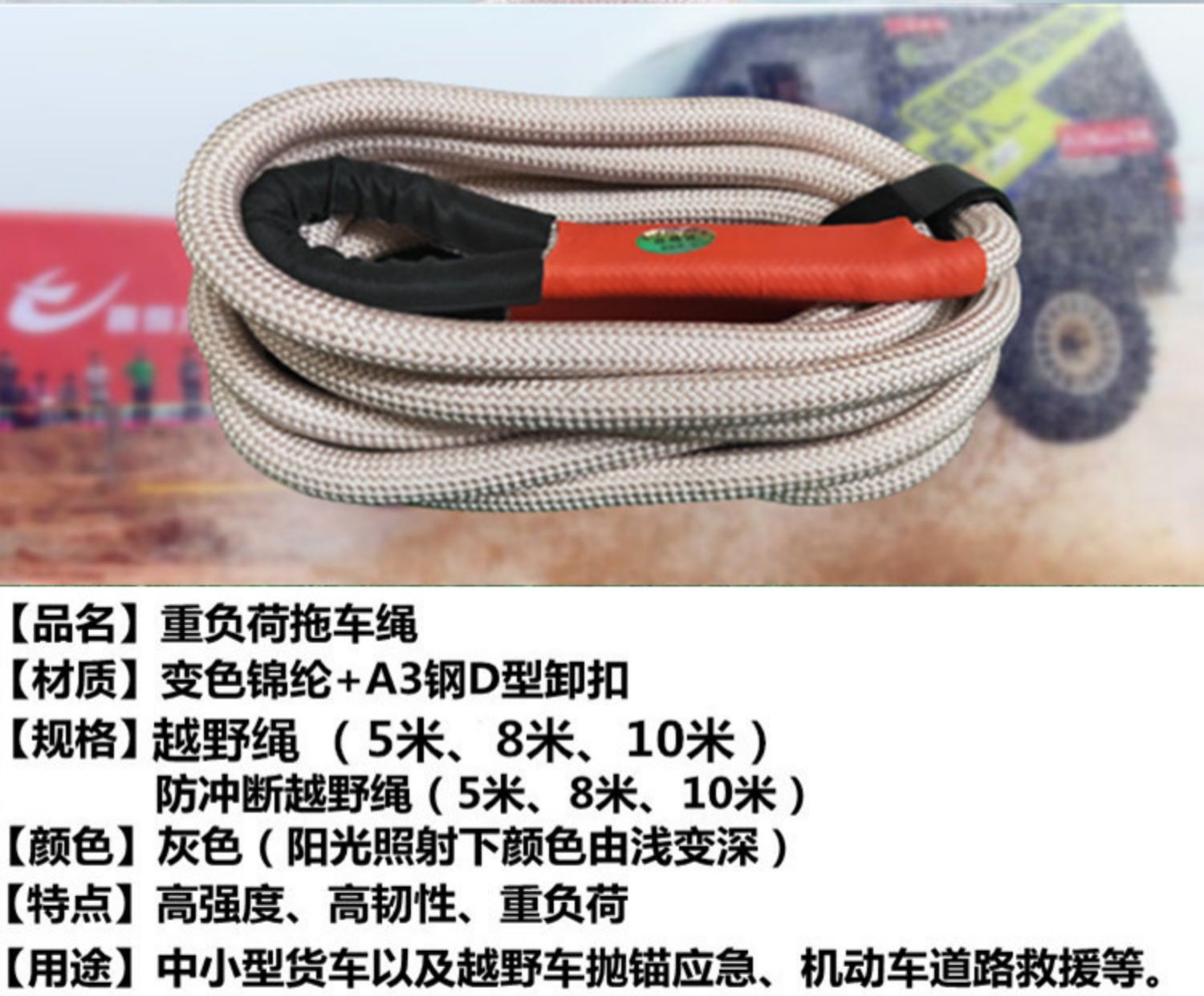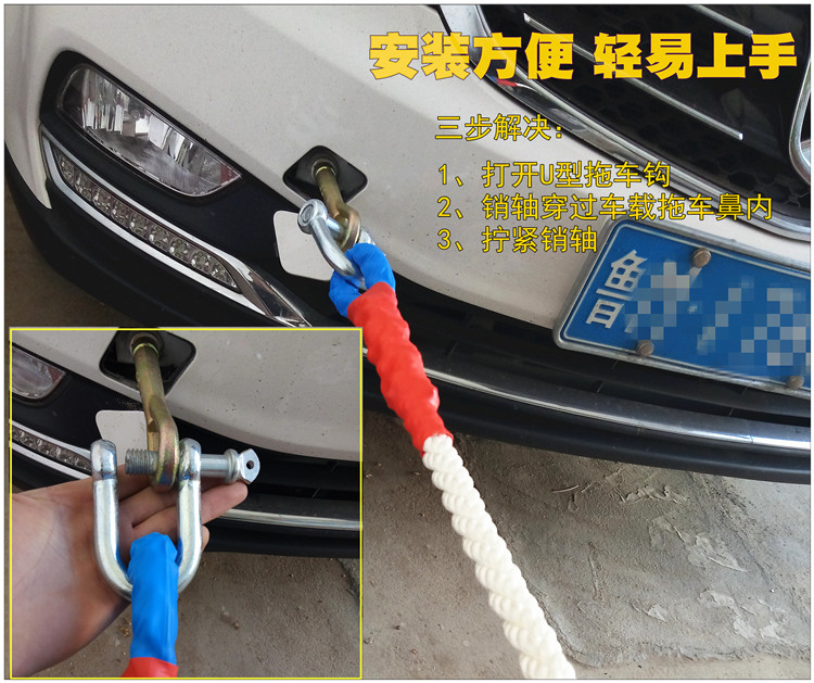 자동차 견인 로프 안티 펀치 두꺼운 5 톤 10 톤 트롤리는 트럭 SUV 오프로드 차량으로 강력한 견인 로프를 당깁니다.스토어 가기