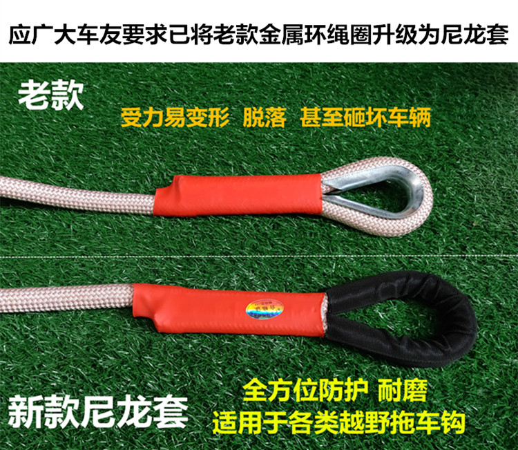 자동차 견인 로프 안티 펀치 두꺼운 5 톤 10 톤 트롤리는 트럭 SUV 오프로드 차량으로 강력한 견인 로프를 당깁니다.