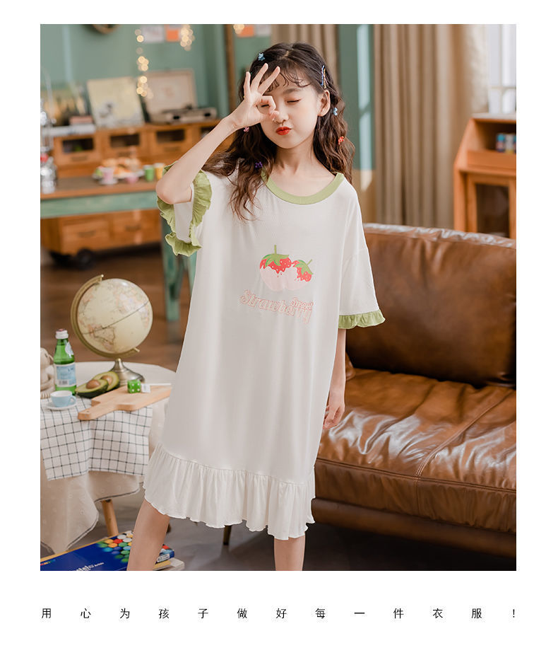 여자 나이트가운 여름 어린이 얇은 공주 홈 옷 에어컨 옷 걸스 걸스 중 · 대형 어린이 반팔 원피스 잠옷스토어 가기