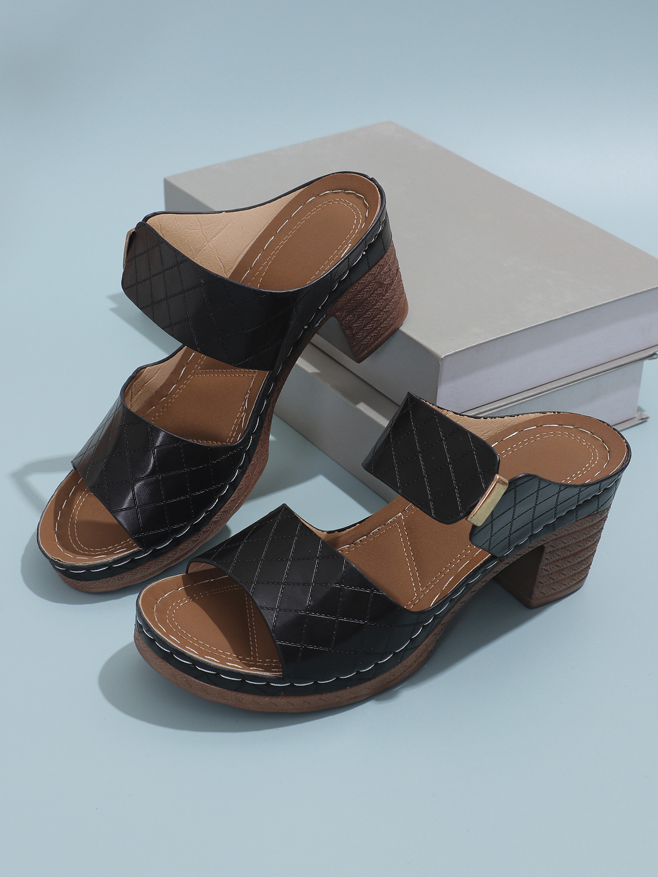 2024 봄과 여름 새로운 하이힐 슬리퍼 여성 유럽과 미국의 패션 트렌드 라운드 헤드 샌들 및 슬리퍼 해외 무역 국경 간 플러스 사이즈 여성 신발