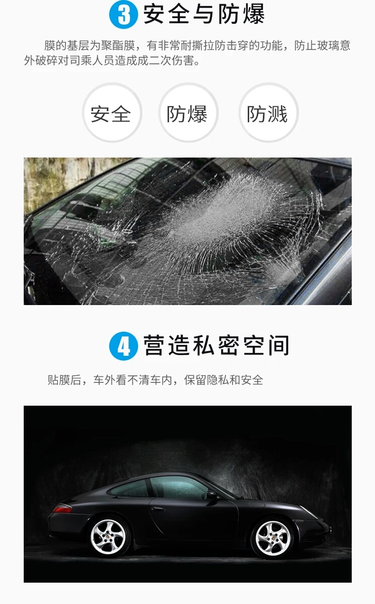 자동차 필름 유리 필름 반 태양 필름 폭발 방지 필름 자외선 차단제 단열 필름 블랙 자동차 창 필름 자체 고정
