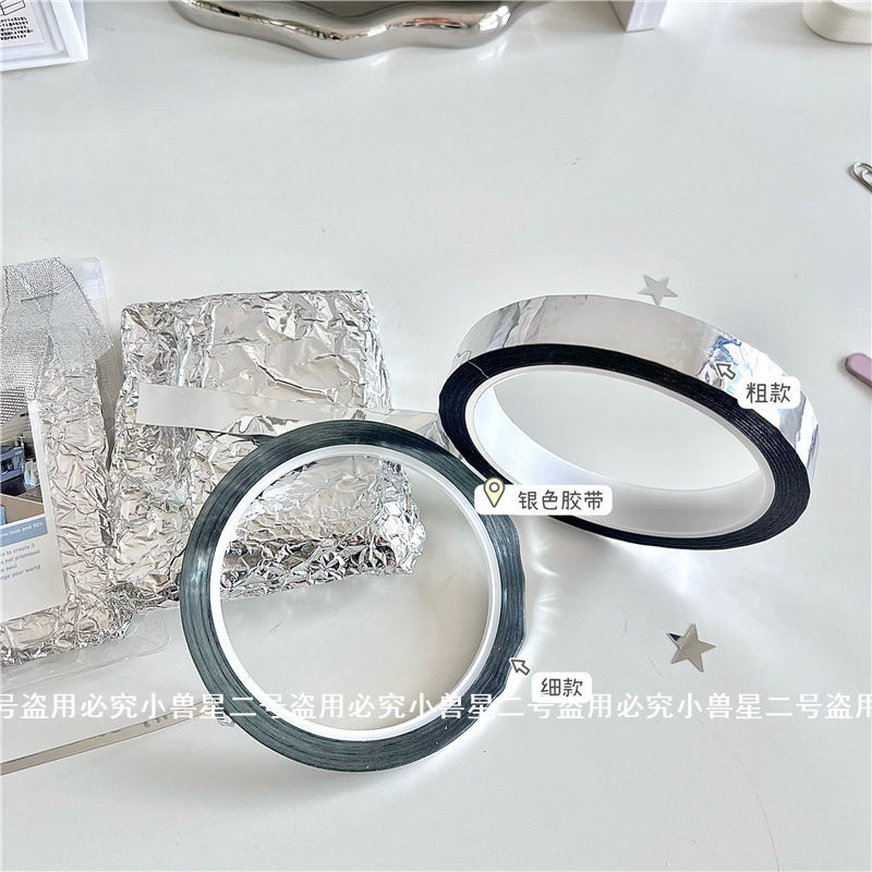 고급 센스 Ins 간단한 스타일 실버 스타일 주석 종이 테이프 카드 아웃 포장 장식 스티커 DIY 미래형 스티커 테이프스토어 가기