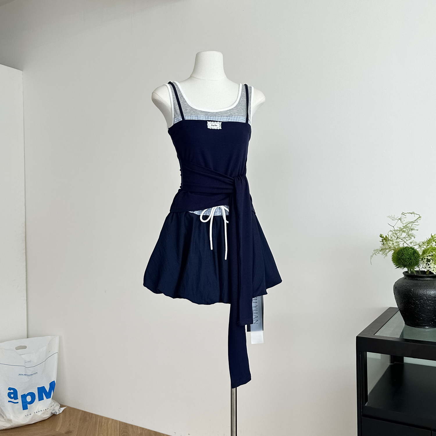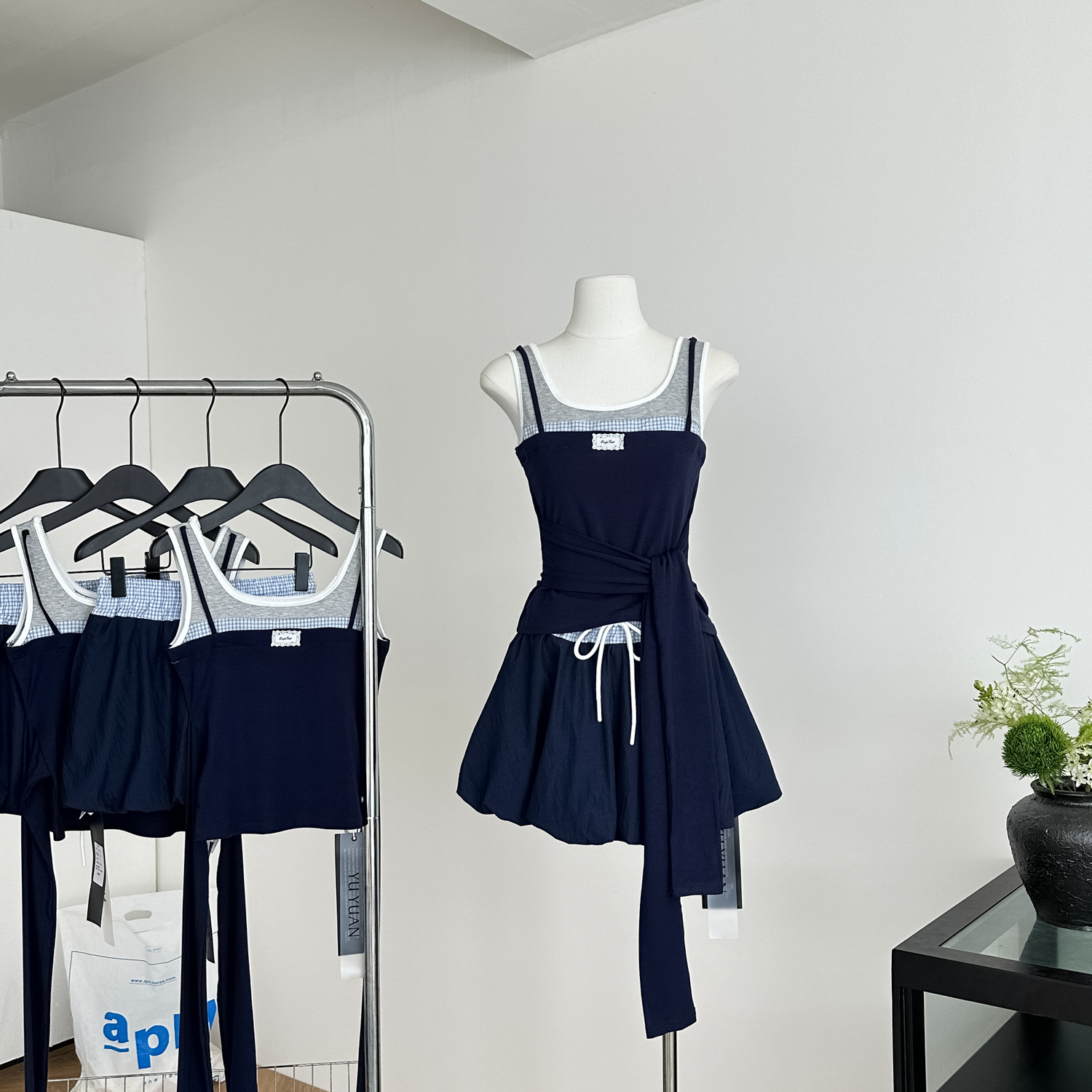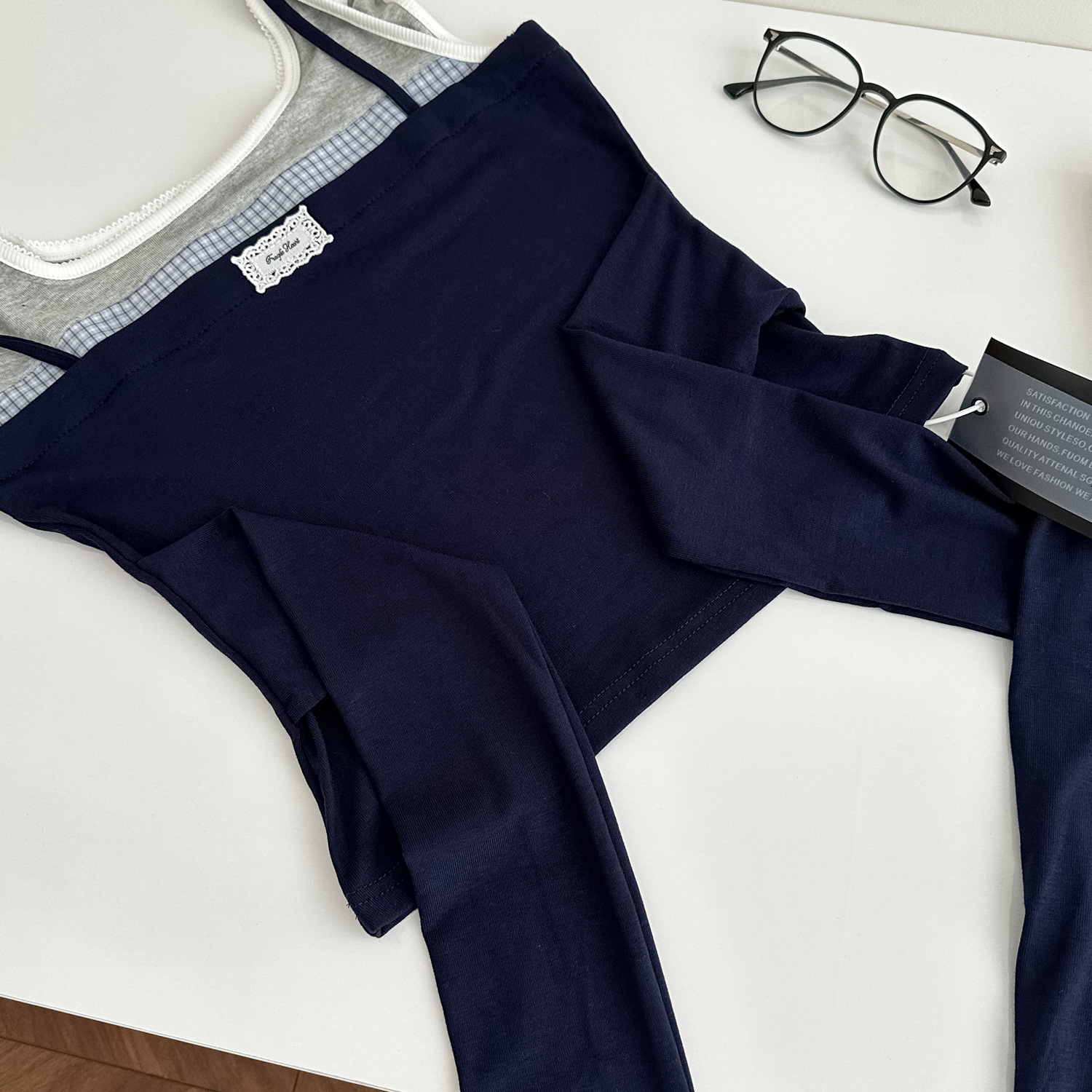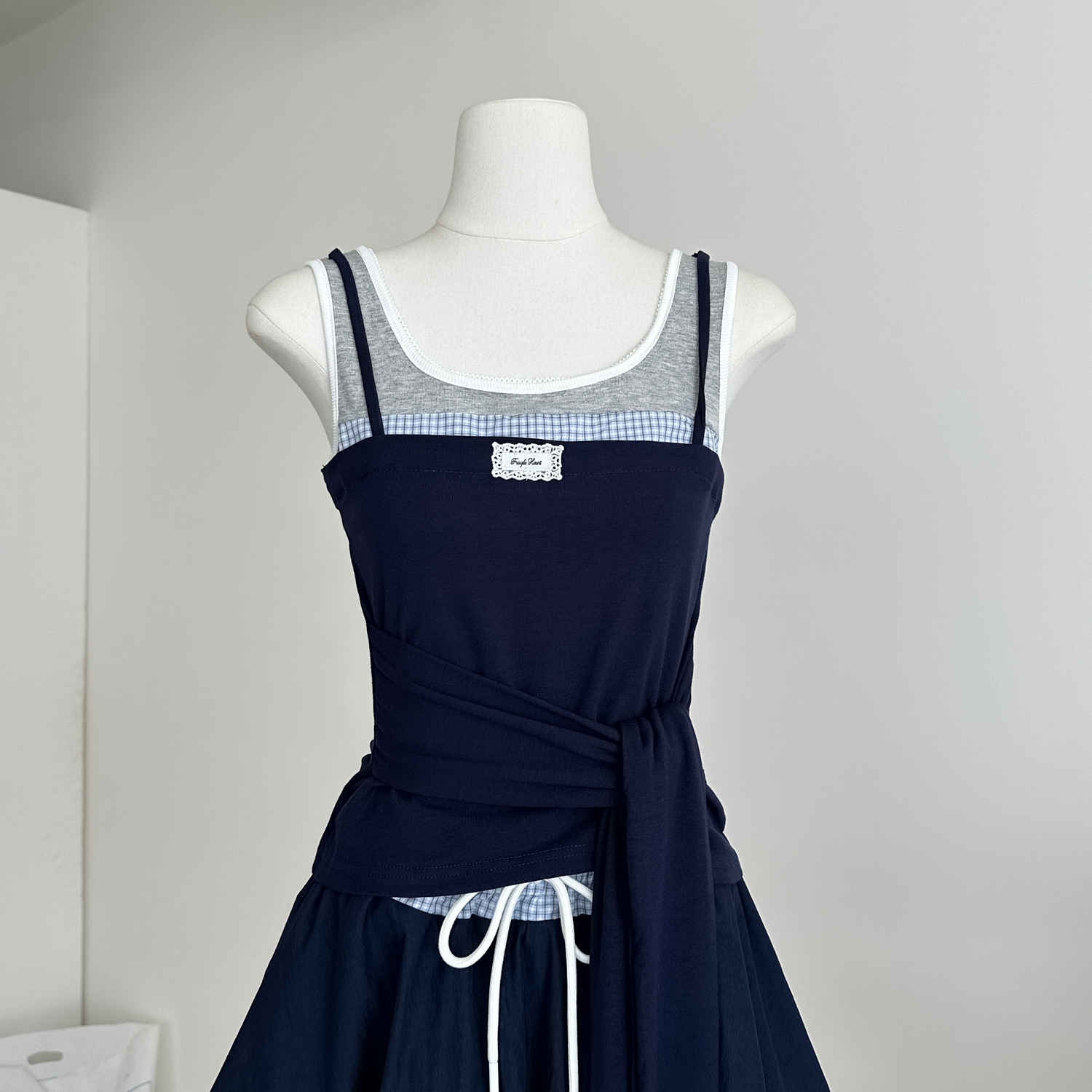 "Xinxing" Sunset Park 테니스 소녀 가짜 3피스 대비 색상 레이어드 miu 복고풍 패셔너블 조끼스토어 가기