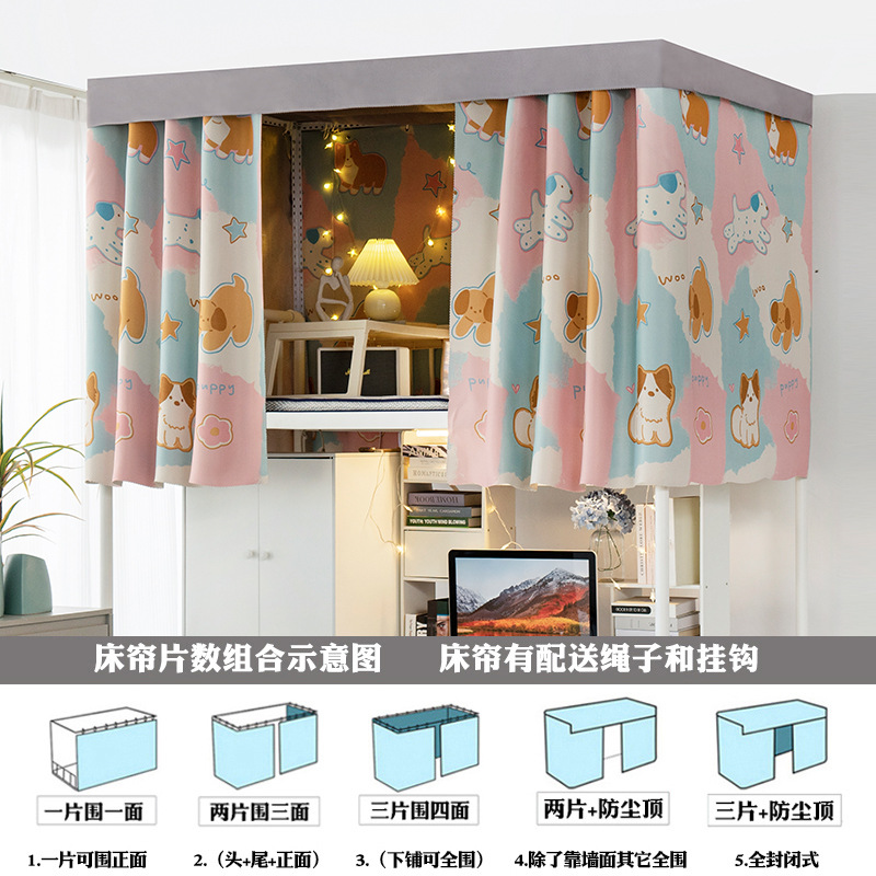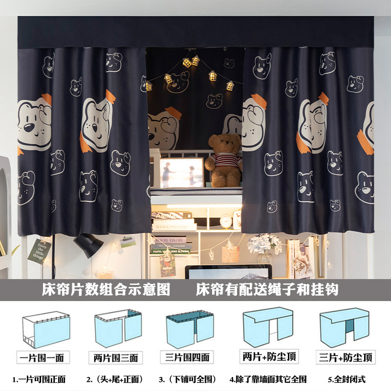 강한 음영 두꺼운 대학생 기숙사 침대 커튼 상단 침대 남성용 낮은 침대 여성용 기숙사 침대 커튼 낮은 테이블 간단한 커튼 차단 천스토어 가기