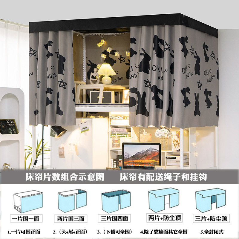 강한 음영 두꺼운 대학생 기숙사 침대 커튼 상단 침대 남성용 낮은 침대 여성용 기숙사 침대 커튼 낮은 테이블 간단한 커튼 차단 천