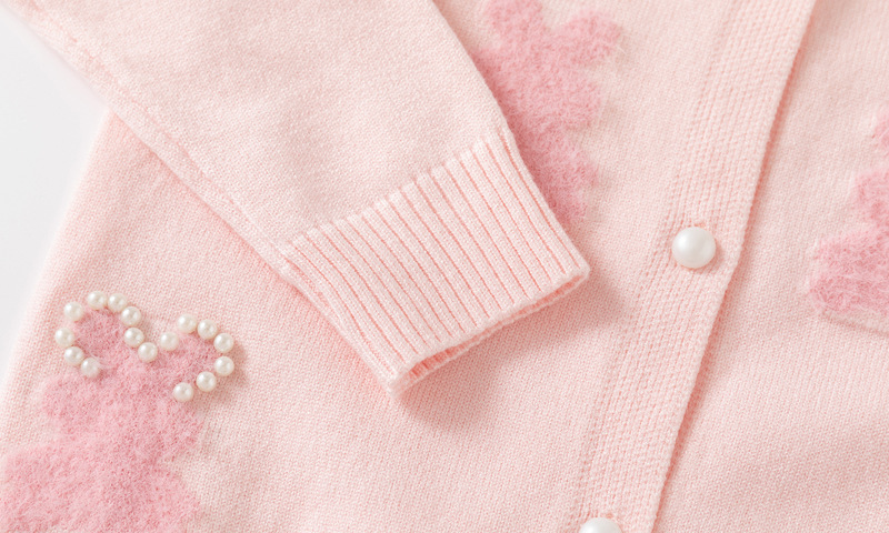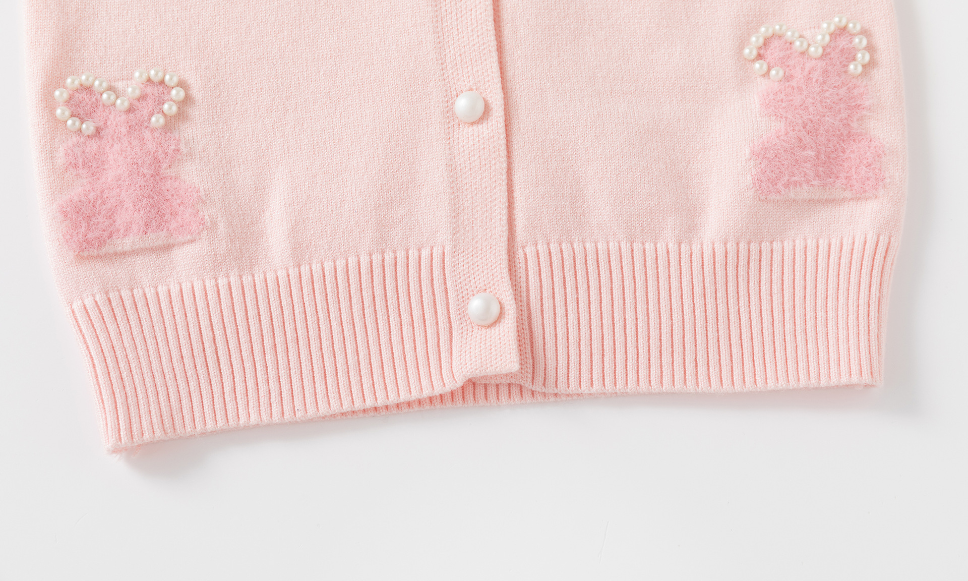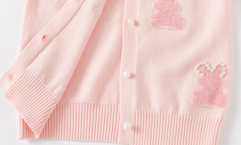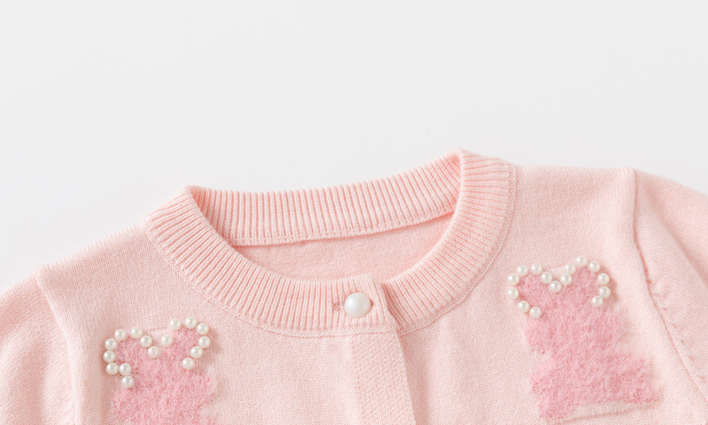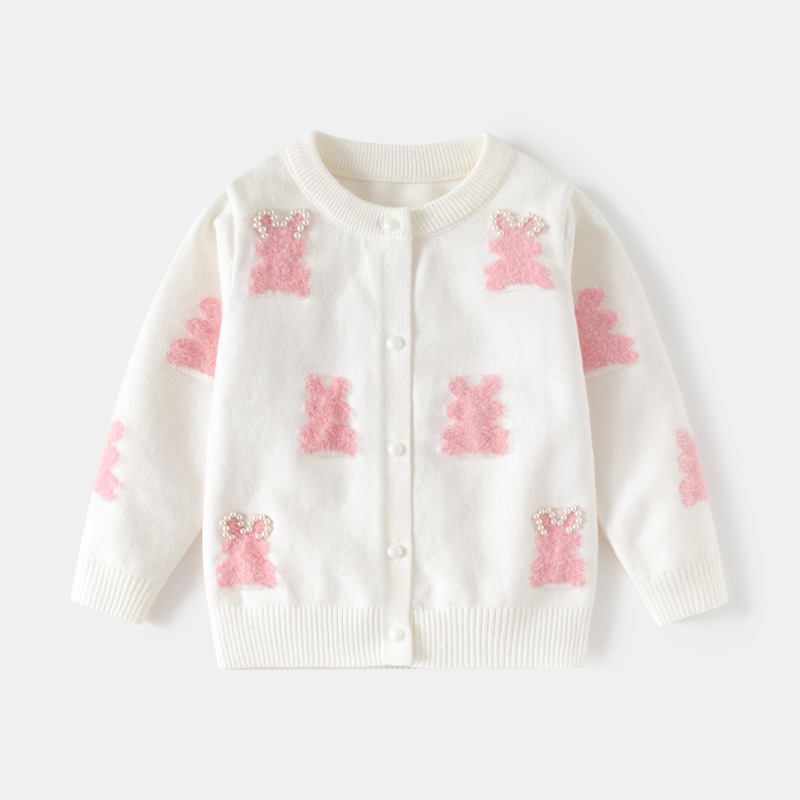 어린이 의류 소녀 모조 밍크 구슬 토끼 니트 카디건 코트 베이비 코어 회전 원사 오픈 가슴 스웨터