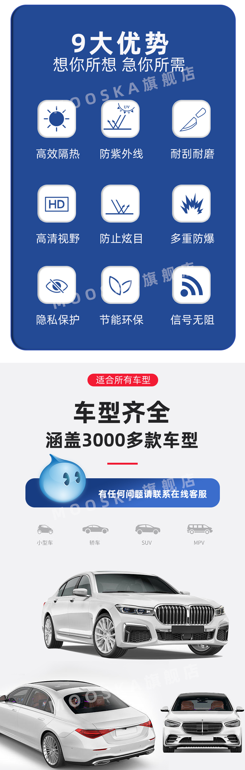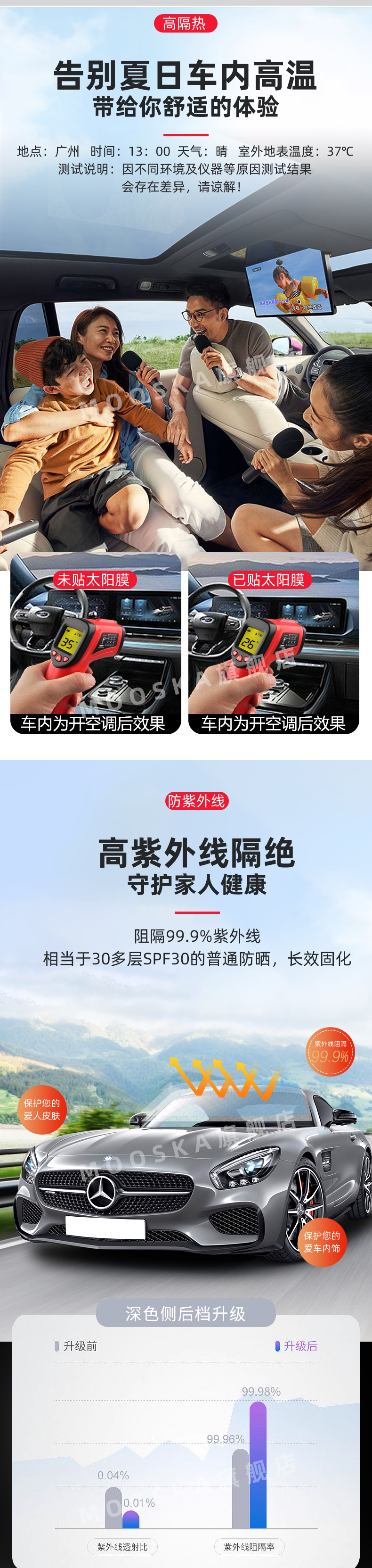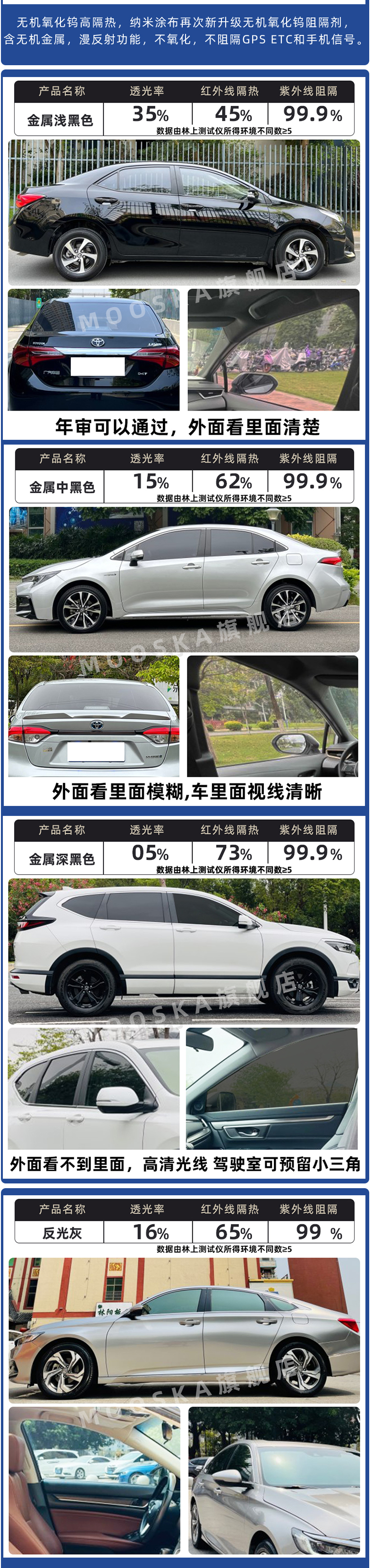 • 창문 4개 + 후면 기어, 고열 절연 텅스텐 산화물, 중간 프라이버시, 10년 보증