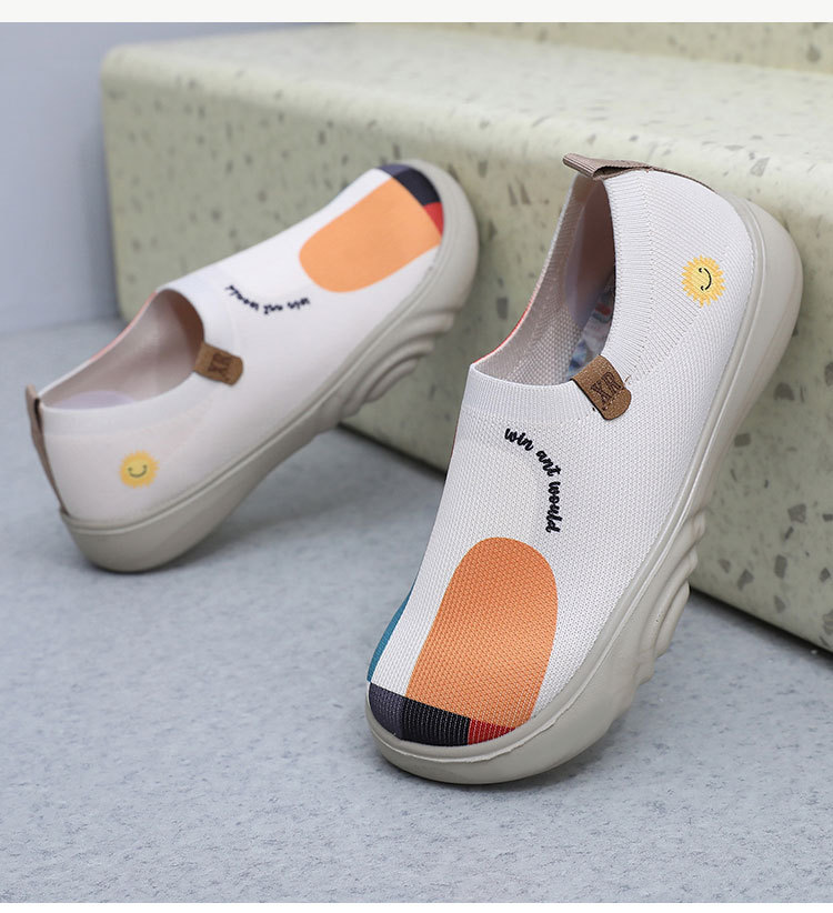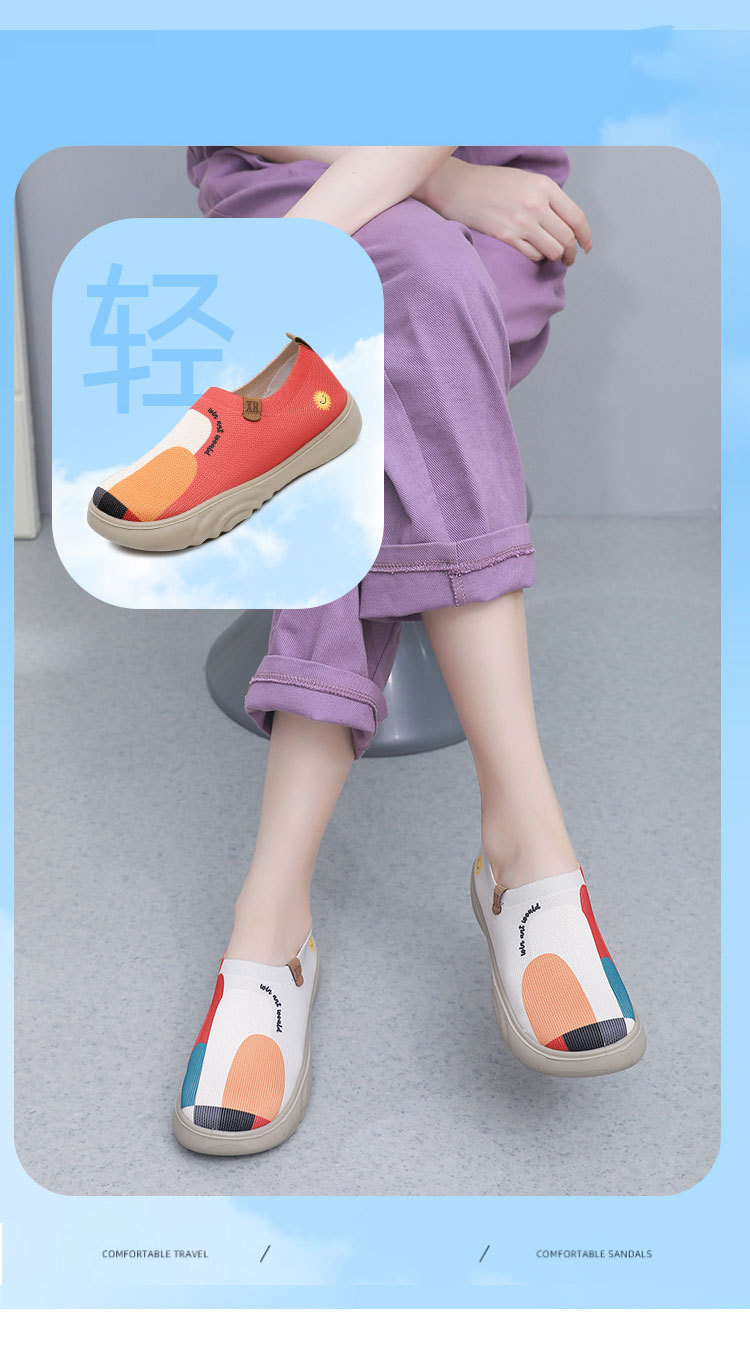 봄과 가을 새로운 여성의 올드 베이징 천 신발 유행 페인트 캐주얼 신발 소프트 단독 부드러운 표면 플라잉 두꺼운 단독 슬립 온 신발
