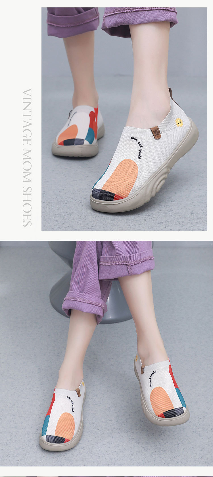 봄과 가을 새로운 여성의 올드 베이징 천 신발 유행 페인트 캐주얼 신발 소프트 단독 부드러운 표면 플라잉 두꺼운 단독 슬립 온 신발스토어 가기