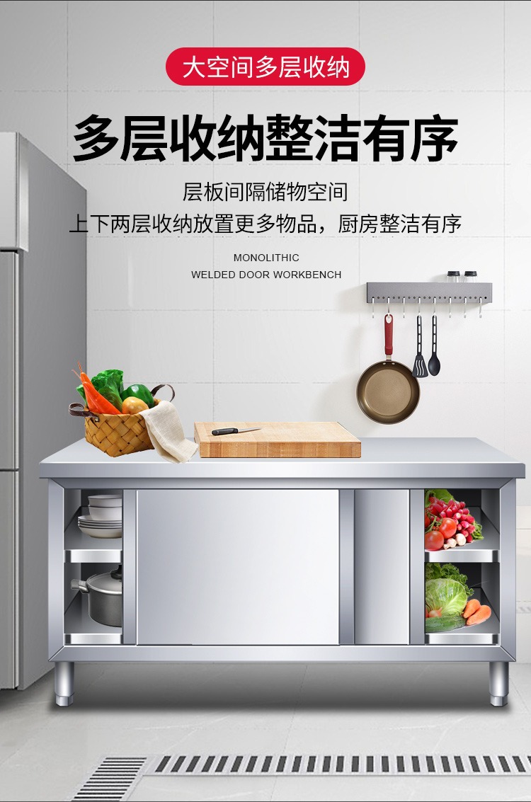 스테인레스 스틸 작업대 슬라이딩 도어 작동 테이블 절단 테이블 슬라이딩 도어 도마 저장 캐비닛 주방 수술대스토어 가기