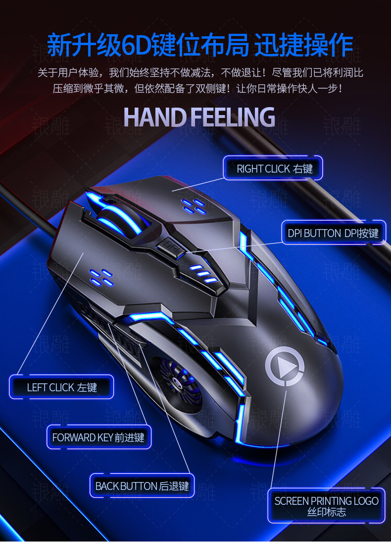 실버 조각 G5 유선 마우스 빛나는 게임 전자 스포츠 기계 음소거 컴퓨터 액세서리 국경 간 개인 모델 아마존 도매