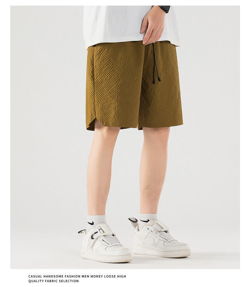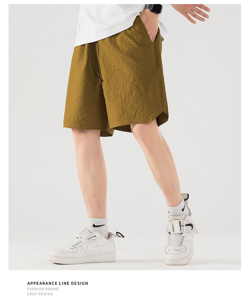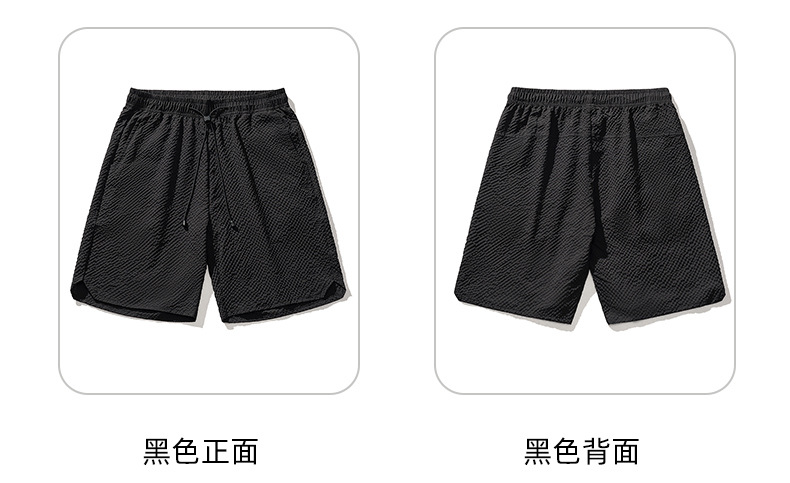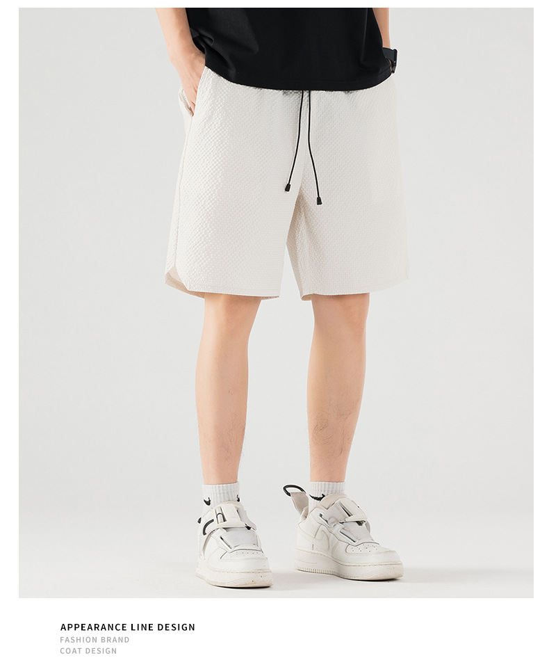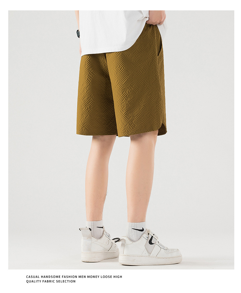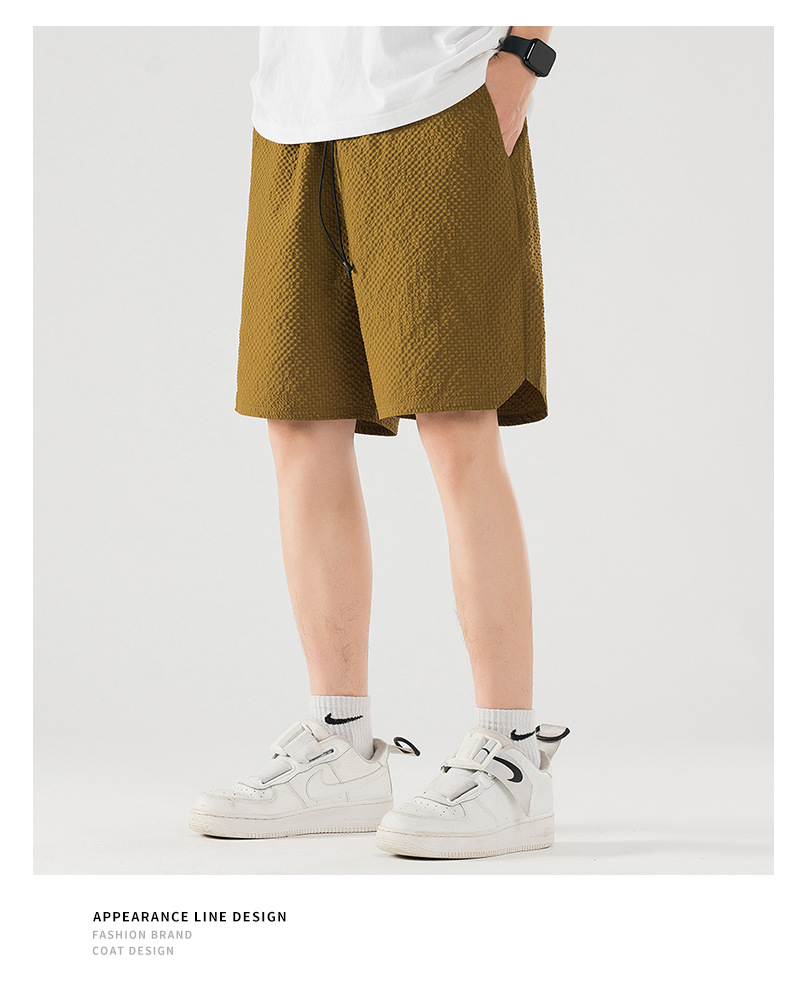일본식 간단한 단색 버블 체크 무늬 캐주얼 반바지 남자 여름 유행 느슨한 올 매치 허리 끈 바지