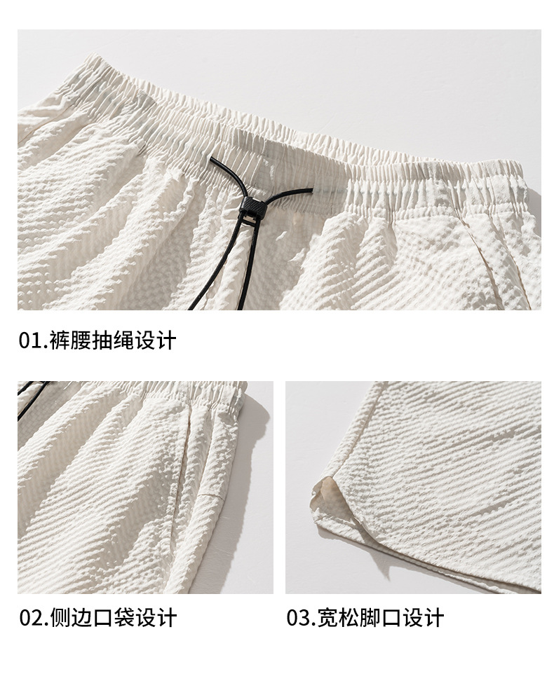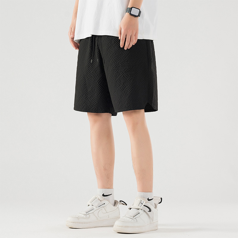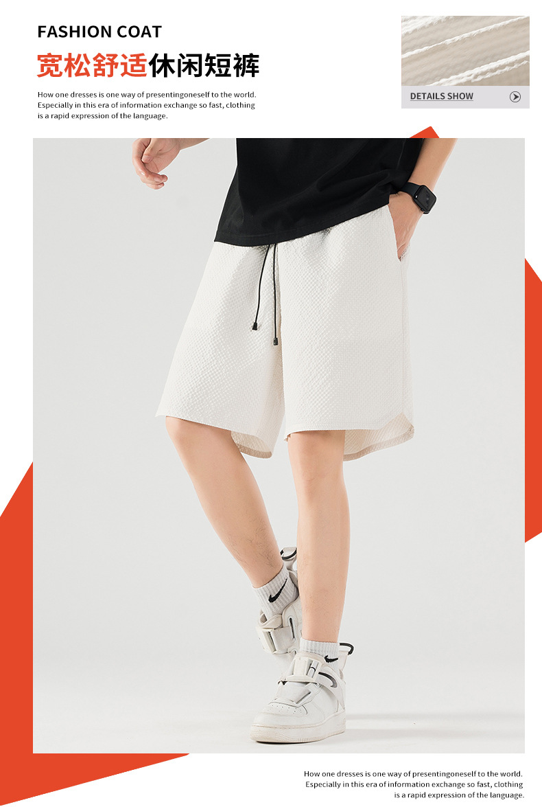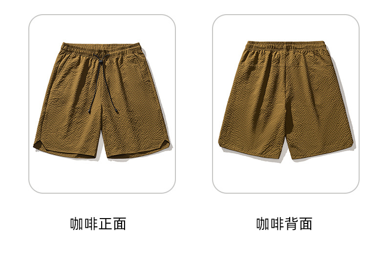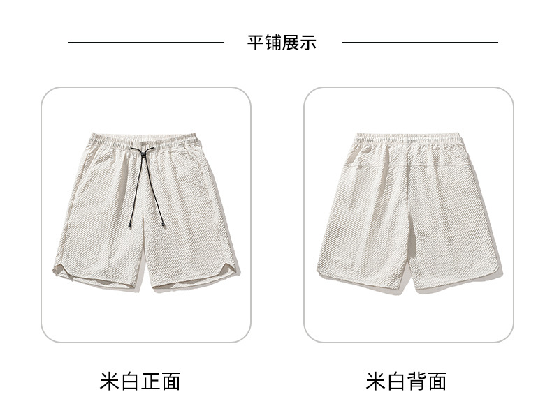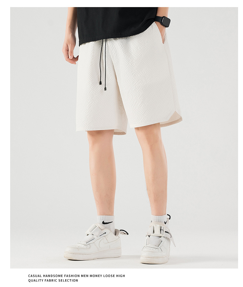일본식 간단한 단색 버블 체크 무늬 캐주얼 반바지 남자 여름 유행 느슨한 올 매치 허리 끈 바지