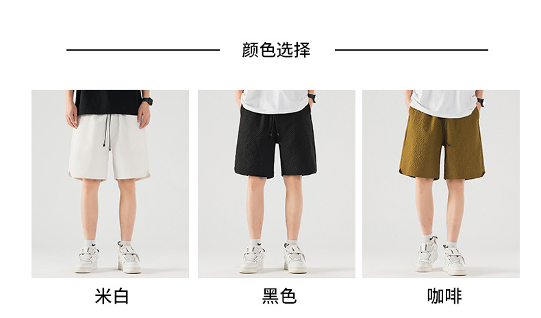 일본식 간단한 단색 버블 체크 무늬 캐주얼 반바지 남자 여름 유행 느슨한 올 매치 허리 끈 바지스토어 가기