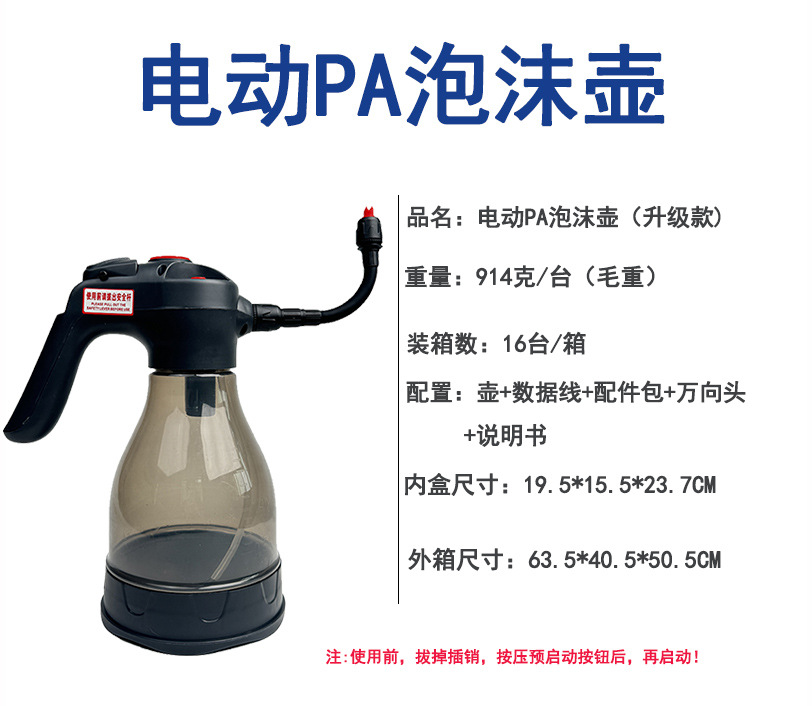 전기 세차 폼 스프레이 병, 세차액, 고거품 스프레이 병, 가정용 고압 PA 병, 자동차 청소 도구스토어 가기