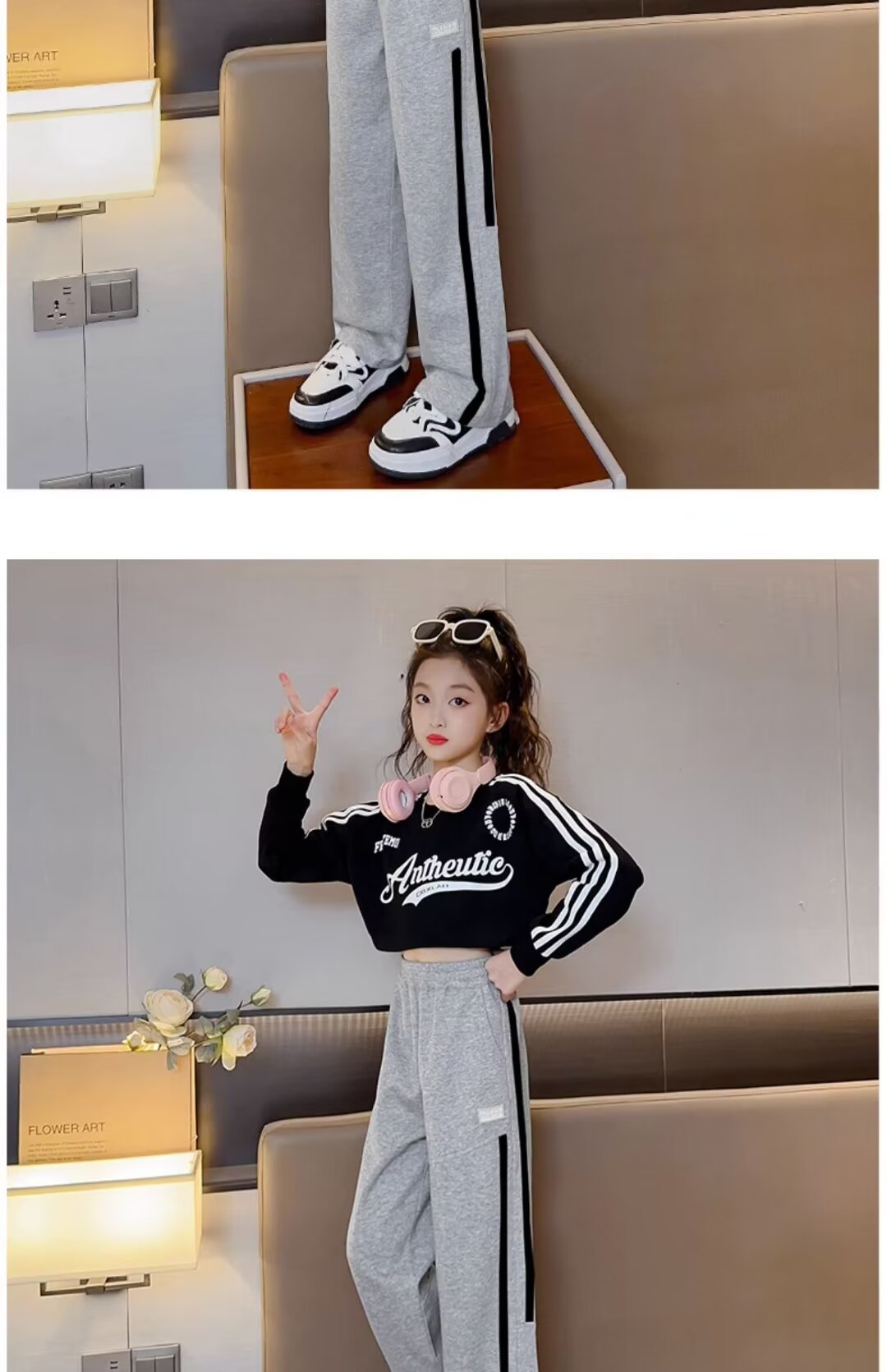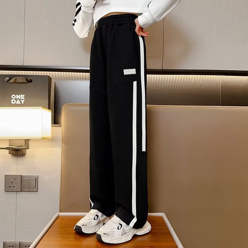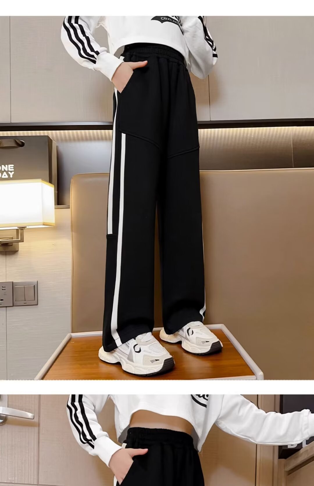 소녀 바지 여름 넓은 다리 캐주얼 바지 새로운 2024 봄과 가을 스트레이트 다리 바지 어린이 바지 학생 스포츠 바지